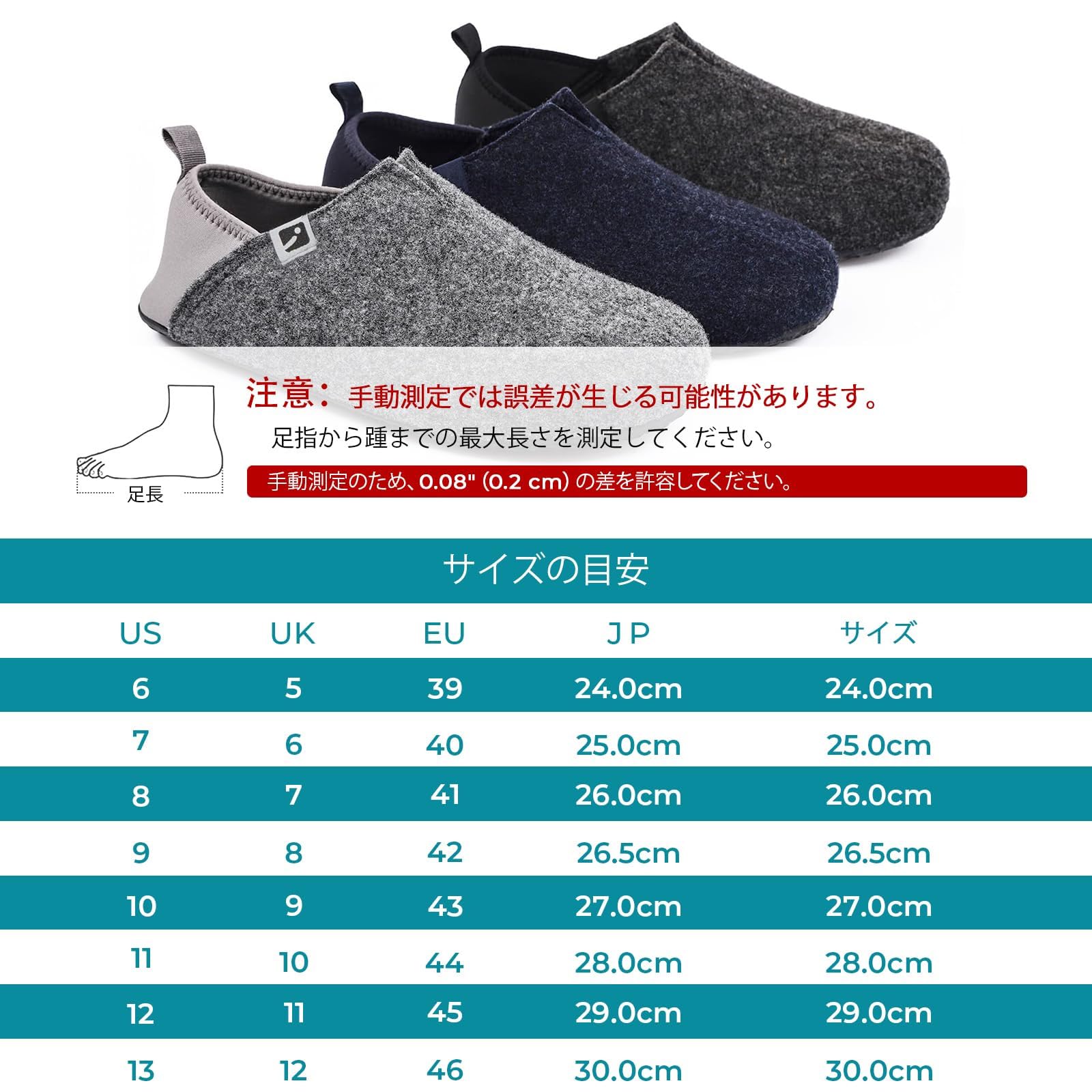 保温性と防風性に優れたフェルト素材で作られたルームシューズです。通気性が高く、季節を問わずオールシーズン適用します。丁寧な縫製で製作し、手洗いで洗濯可能で、長くご愛用いただけます。また、靴底に滑り止め加工が施され、転倒を防止し、歩く際のパタパタ音が鳴りにくく、マンションやアパートの防音対策にも適用します。かかとを上げても下げても使えるので、脱ぎ履きがしやすく、リラックス雰囲気を演出してくれます。さらに、自宅だけではなく、オフィス、学校、病院など様々なシーンで活躍します。自分用はもちろん、家族、友人への心温まるプレゼントとしてもおすすめです。