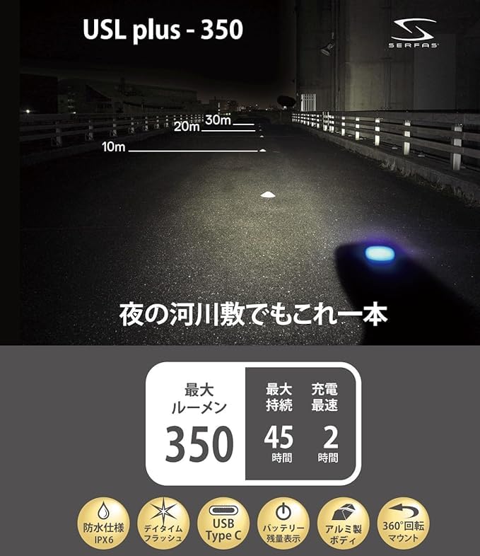 【特価セール】SERFAS(サーファス) 自転車用LEDヘッドライト USL PLUS USB Type-C充電式