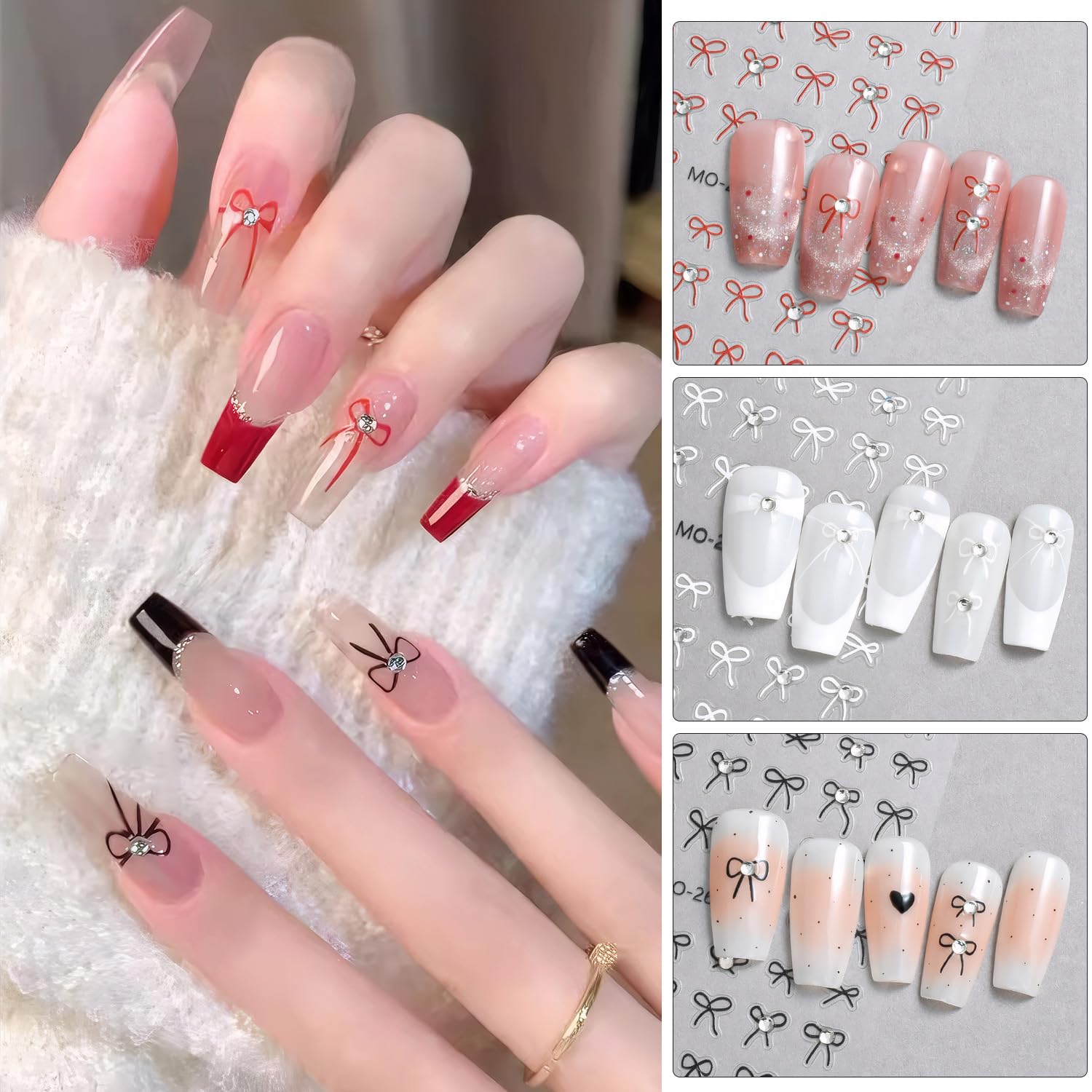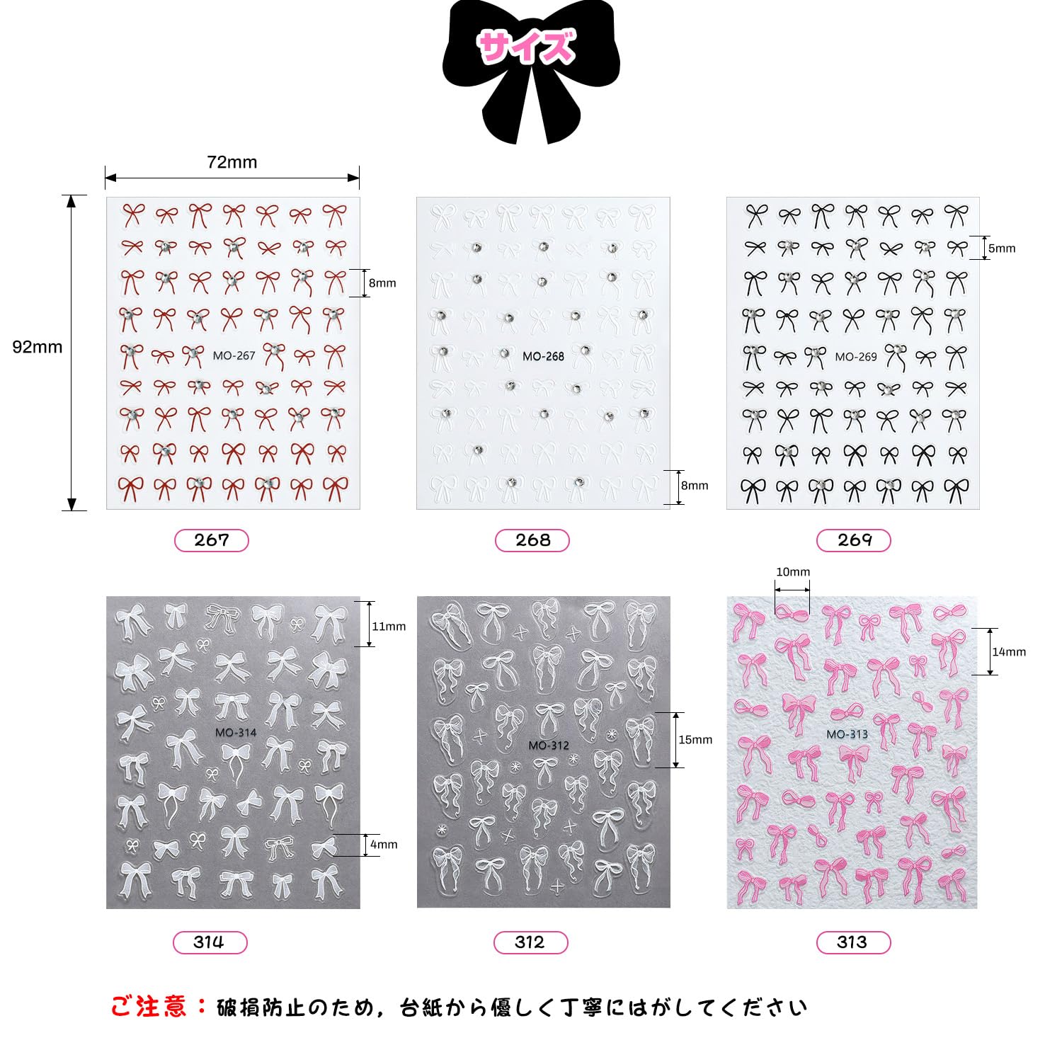 【マルチサイズ】さまざまなサイズがある蝶結びシールは、爪のサイズやネイルスタイルに合わせることができます
