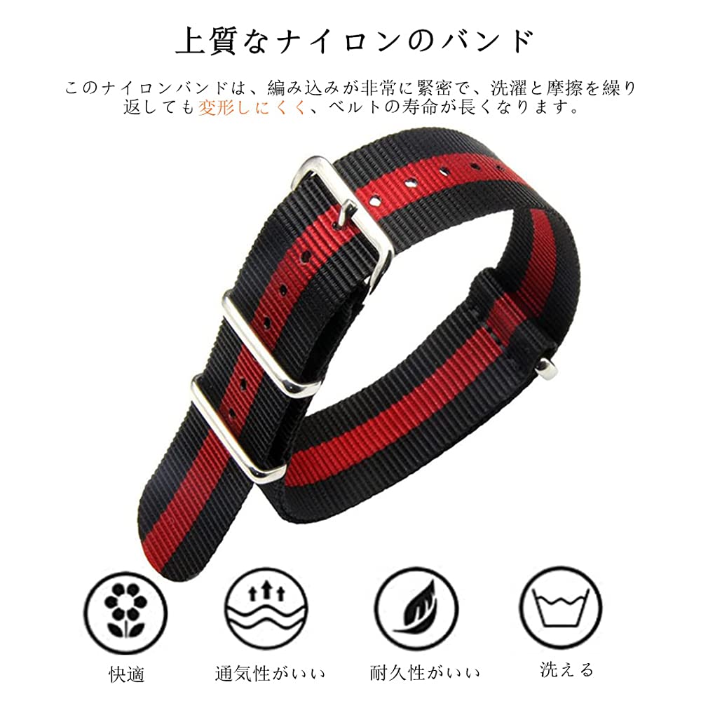 【特価セール】[Nywing] 時計ベルト Natoタイプ 腕時計バンド ナイロン G10上質 ウォッチストラップ 16mm 18mm 20mm 22mm 24mm Ballistic時計バンド Nylon Watch Band G10 交換ベルト NATO バンド 腕時計 取り替え工具付