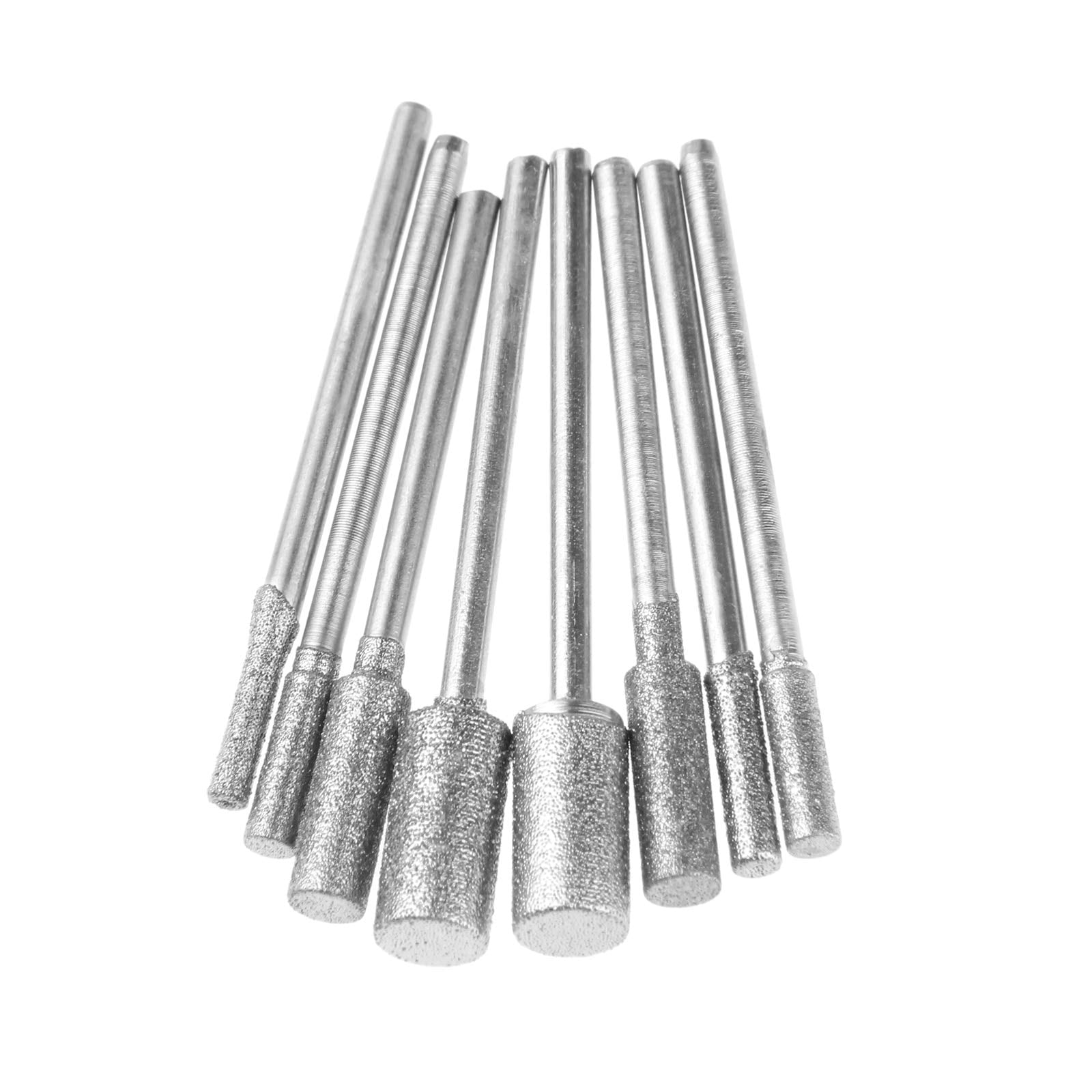 8本セット 研削用ドリルビット ダイヤモンドビット ダイヤモンド マウントポイント 円筒形 先端 研磨ビット シャンク 2.35mm ルータービット