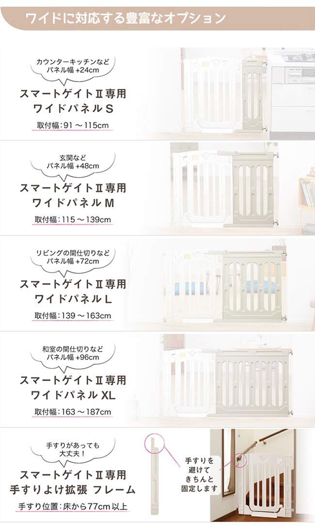 日本育児 スマートゲイトⅡ ミルキー + ワイドパネルミルキー Lサイズセット 【取付け幅139〜163cm対応】