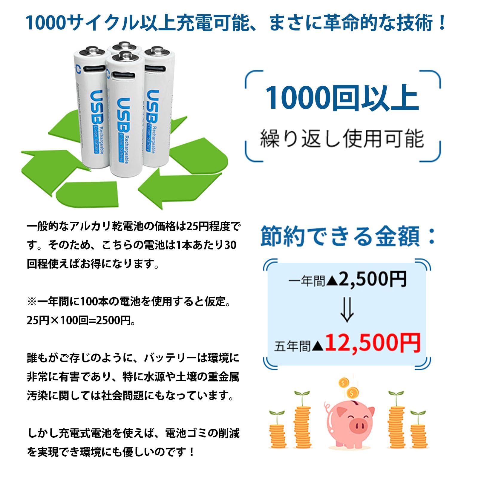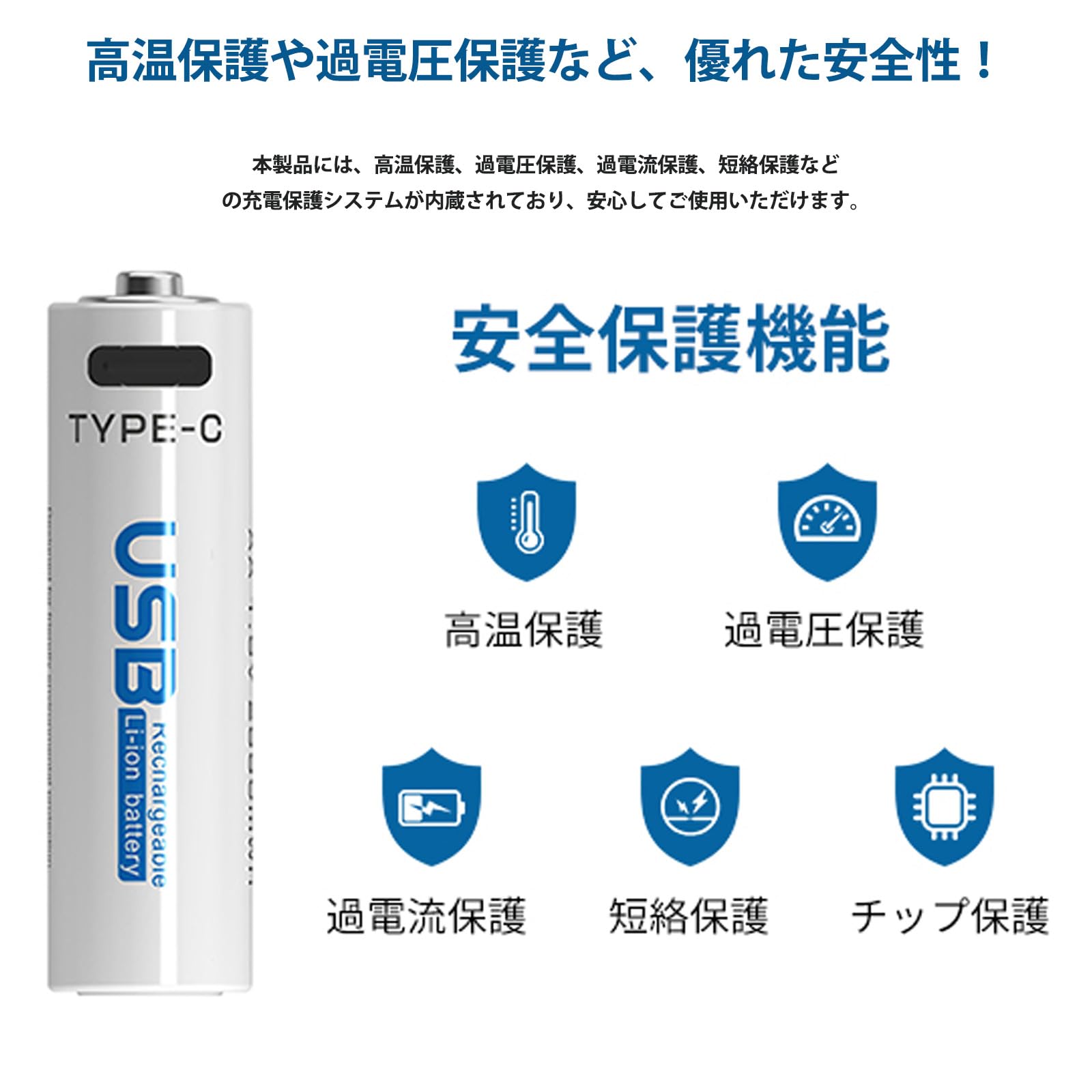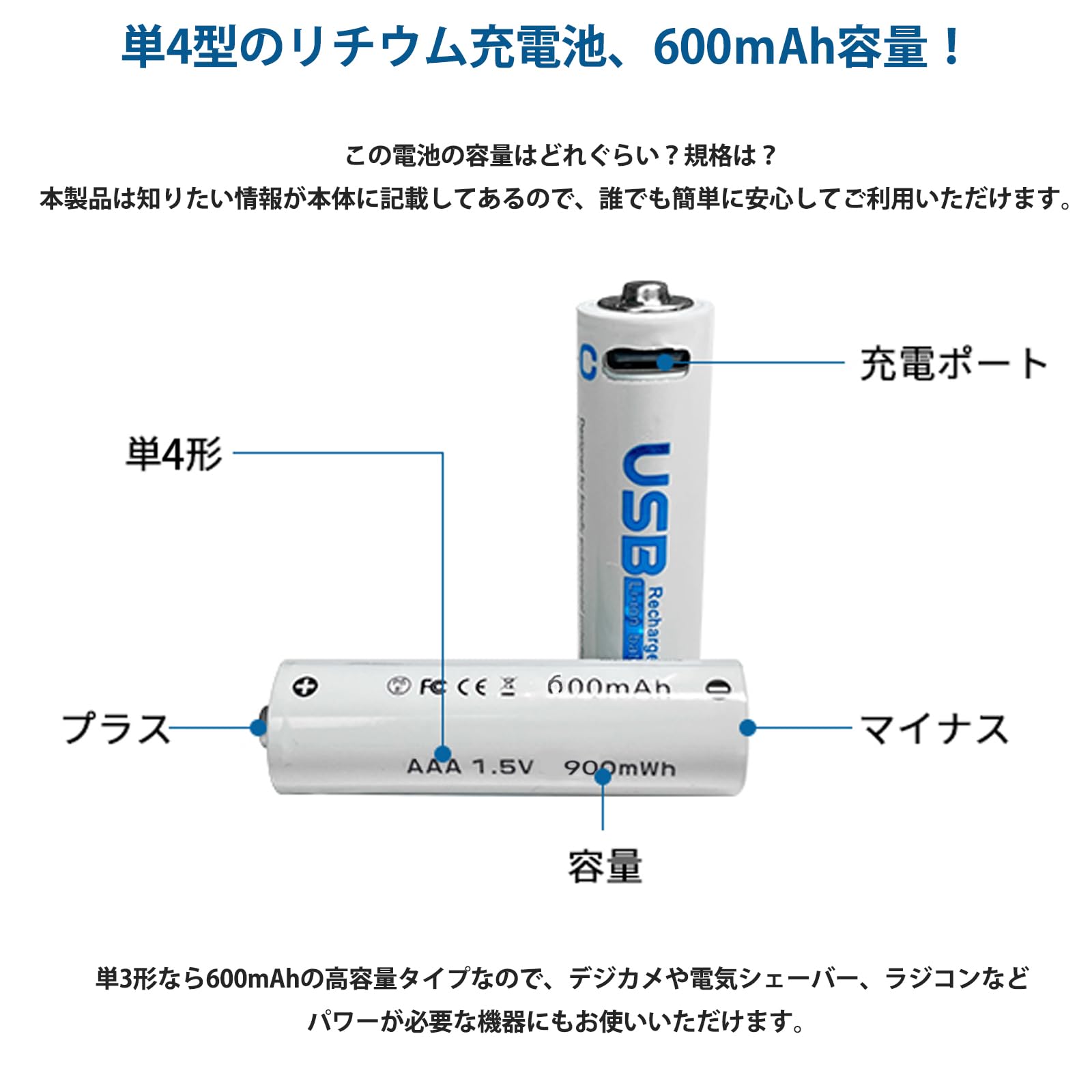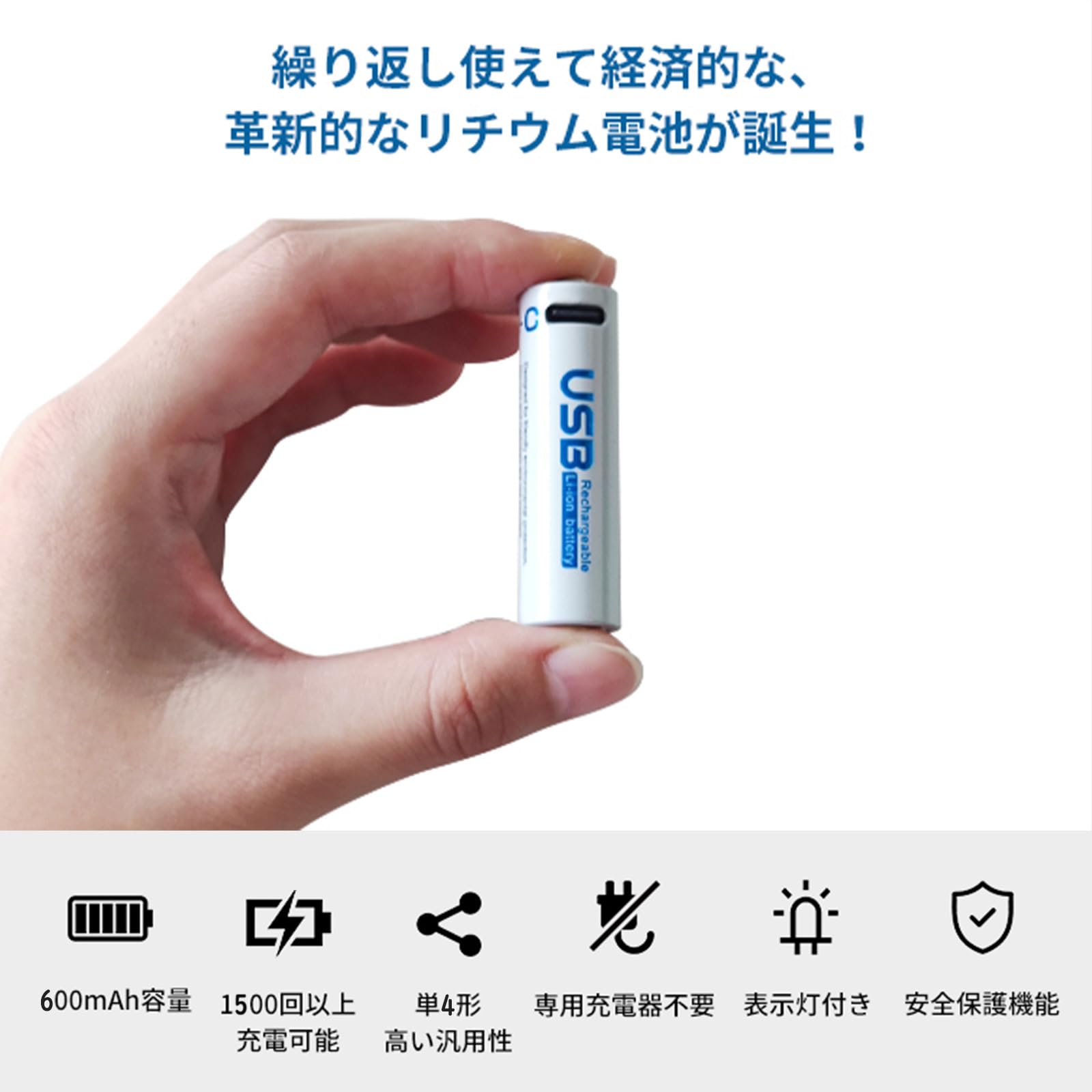 UNNIK 単4電池 充電式 4本セット 約1000回使用可能 600mAh/900mWh 1.5V定出力 リチウムイオン 単4形充電式電池 急速充電 保護回路付き エコ AAA電池 TYPE-C充電ケーブル付き (単4形充電池-4本セット)