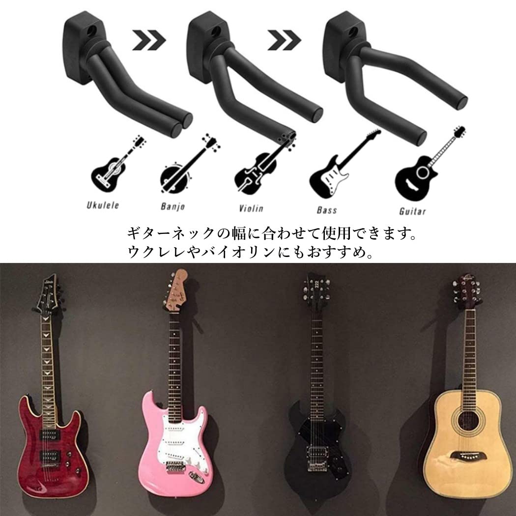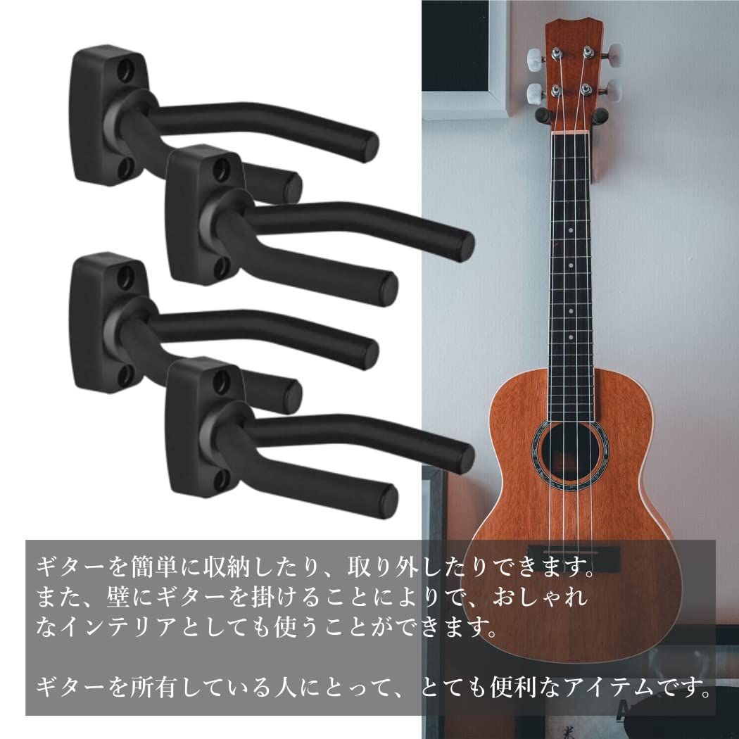 XSAJU ギターハンガー 4個セット 10枚ピック付き 壁掛け ギターホルダー フック幅調整可能 ネック保護クッションタイプ ブラック