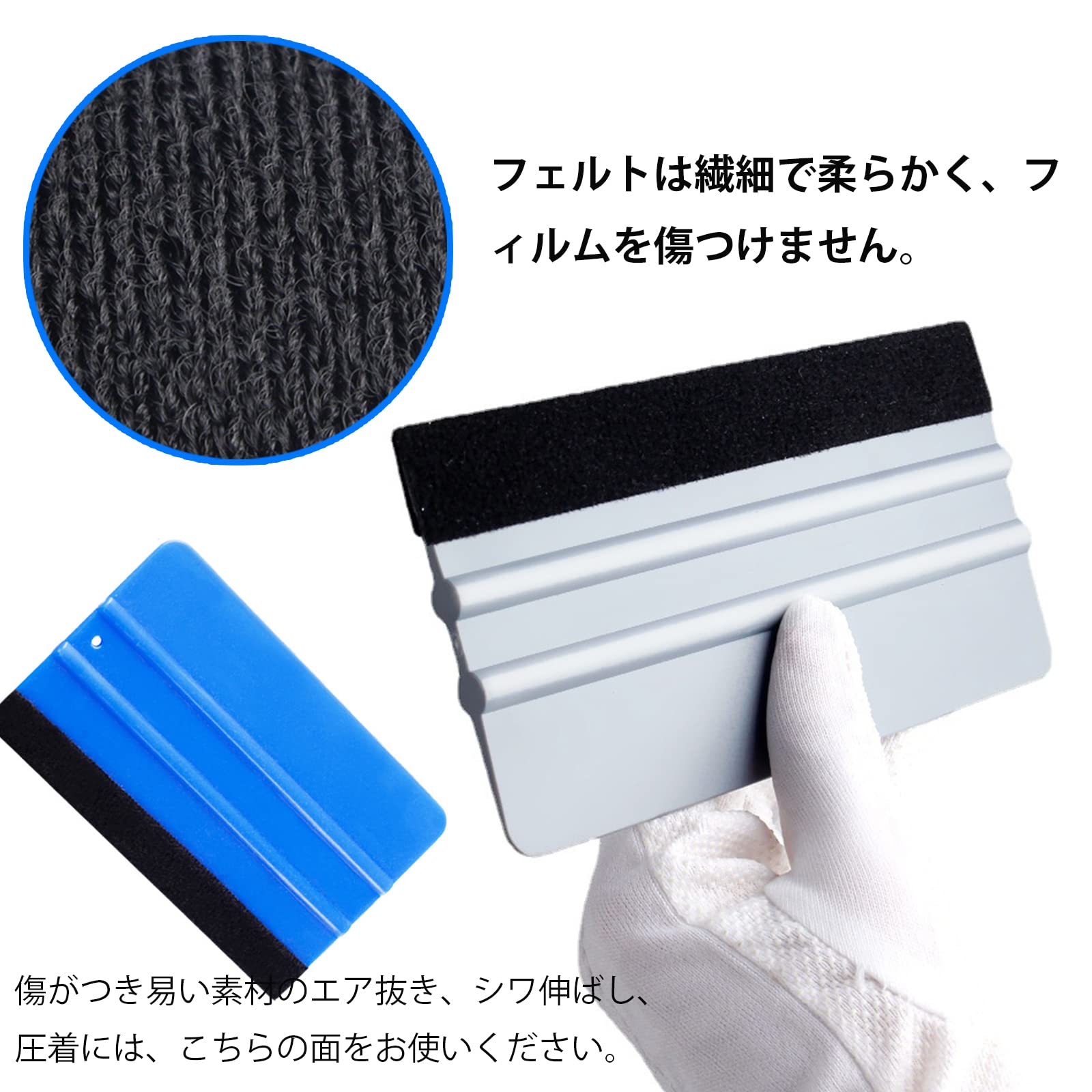 【高品質素材】軽く、耐熱性・衝撃強度に優れたプラスチックは硬すぎず、柔らかすぎず、柔軟性があります。先端部分は素材にやさしくキズが付かないフェルト(取り外可能)を付けています。傷が付きにく、カッティングシートにも車にもやさしいです。