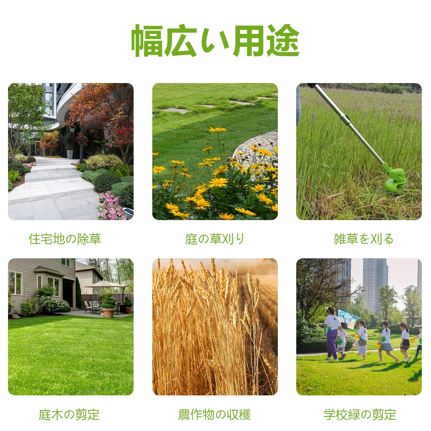 芝刈りでも、雑草刈りでも、灌木刈りでも、芝生、雑草、灌木、灌木を簡単かつ効果的に処理できます。このコードレス雑草トリマーは、あなたの庭を一瞬にして美しくします。