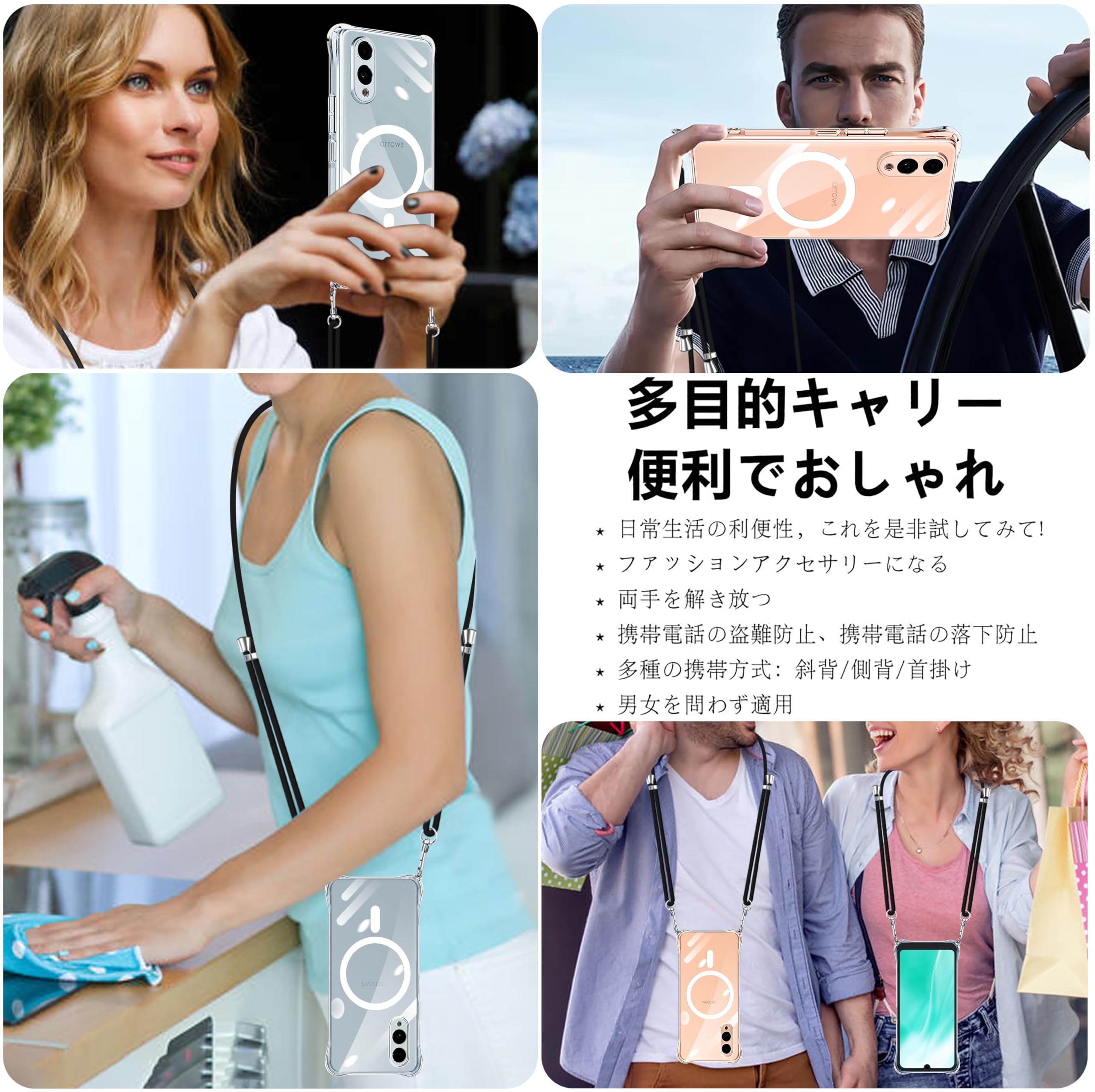 Arrows We2 ケース クリア ショルダー FCG02 F-52E ストラップ付き スマホケース 耐衝撃 アローズ We2 カバー TPU 肩掛け 斜めかけ 縄掛けケース 薄型 軽量 長さ調整可能 取り外し可能 落下防止 紛失防止 【透明】