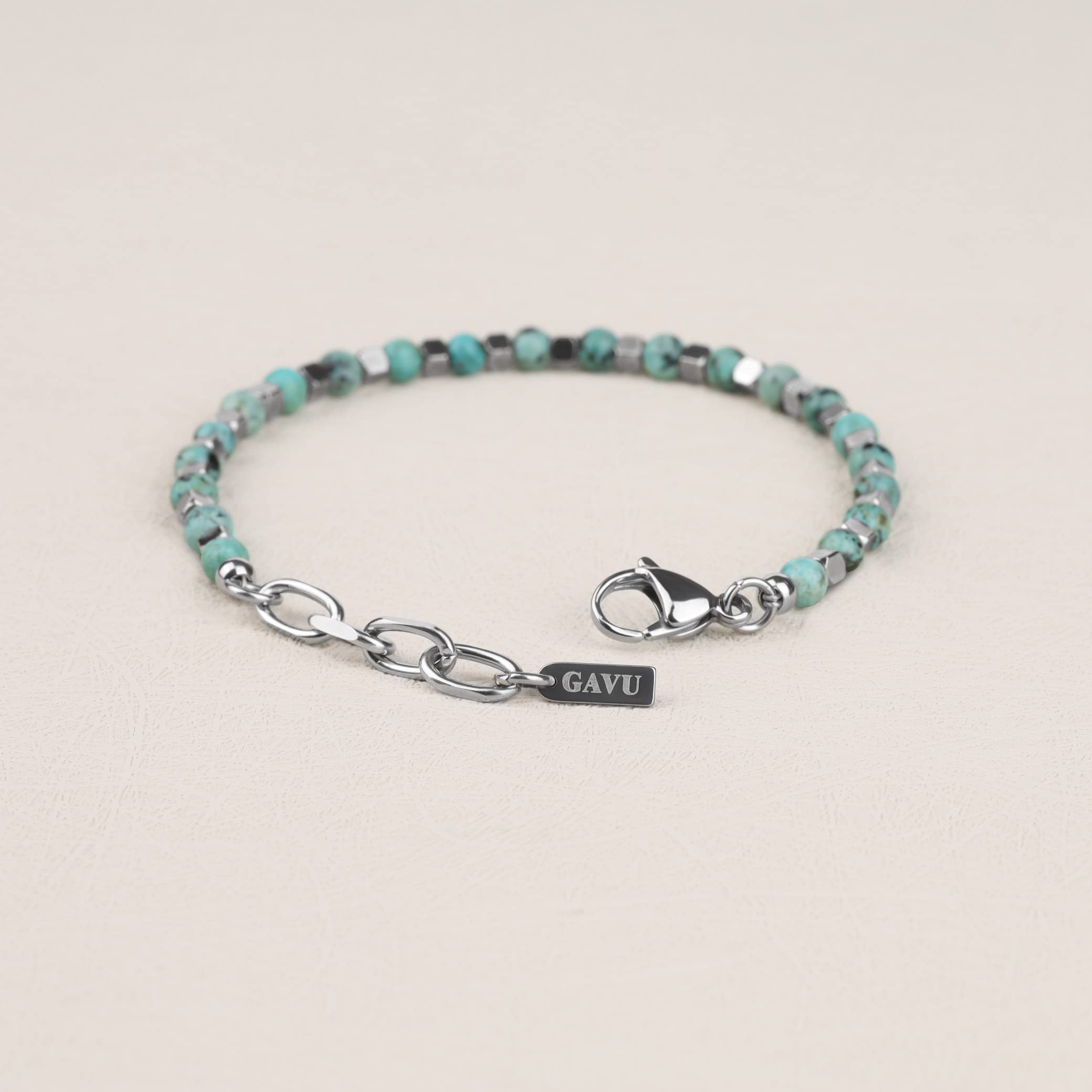 [GAVU] [ガーブ] アフリカンターコイズ ステンレス パワーストーンブレスレット メンズ