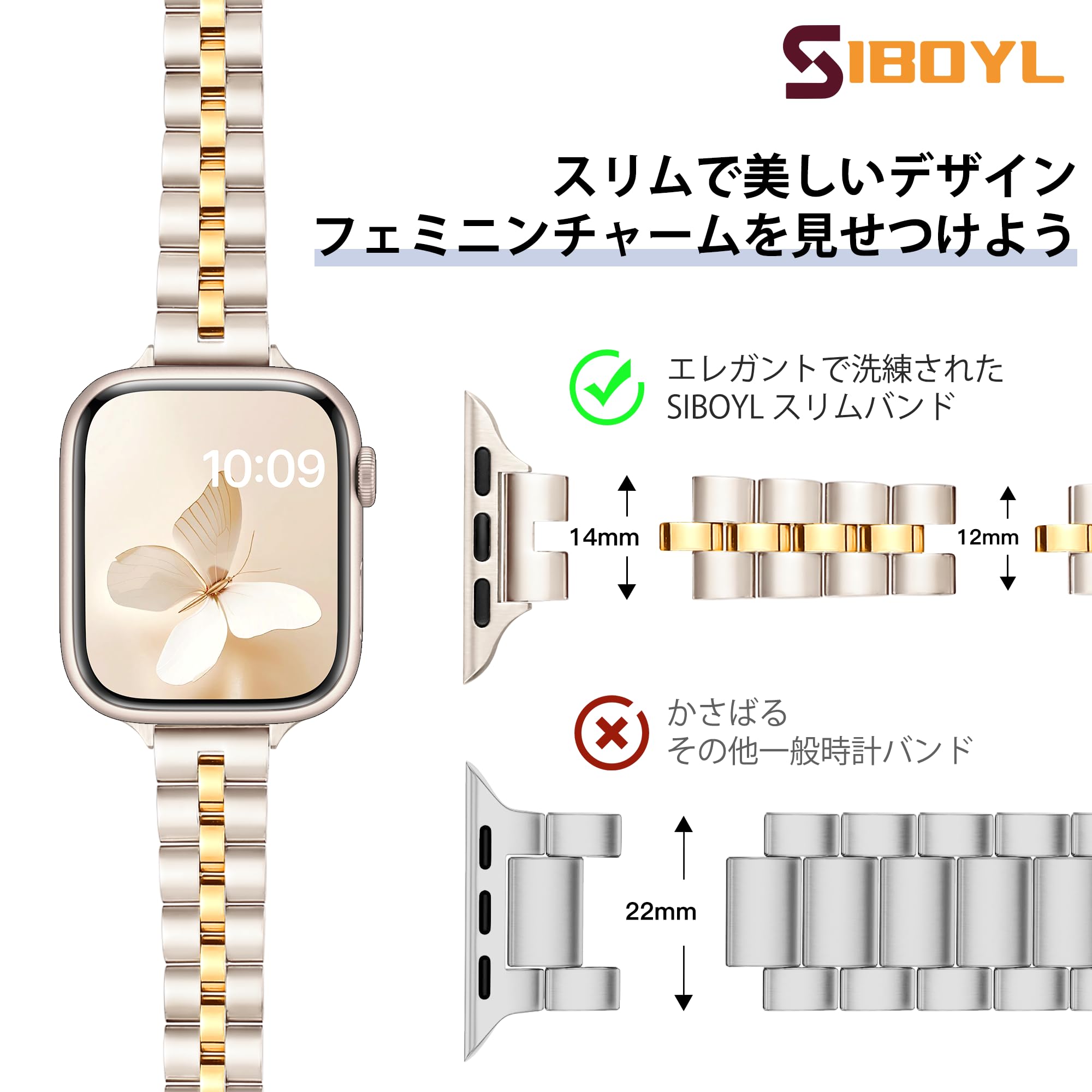 [SIBOYL] 超細人気 い対応アップルウォッチ バンド 42mm(Series 11 10) 41mm 40mm 38mm 46mm 45mm 44mm 49mm 42mm(Series 3/2/1)、おしゃれ対応Appleウォッチ バンド、コンパチブルApple Watch ベルト ステンレス、おしゃれアップルウォッチ ベルトレディース対応iWatch 11 10 Se 9 8 7 6 5 4 3 Ultra 3 2 1