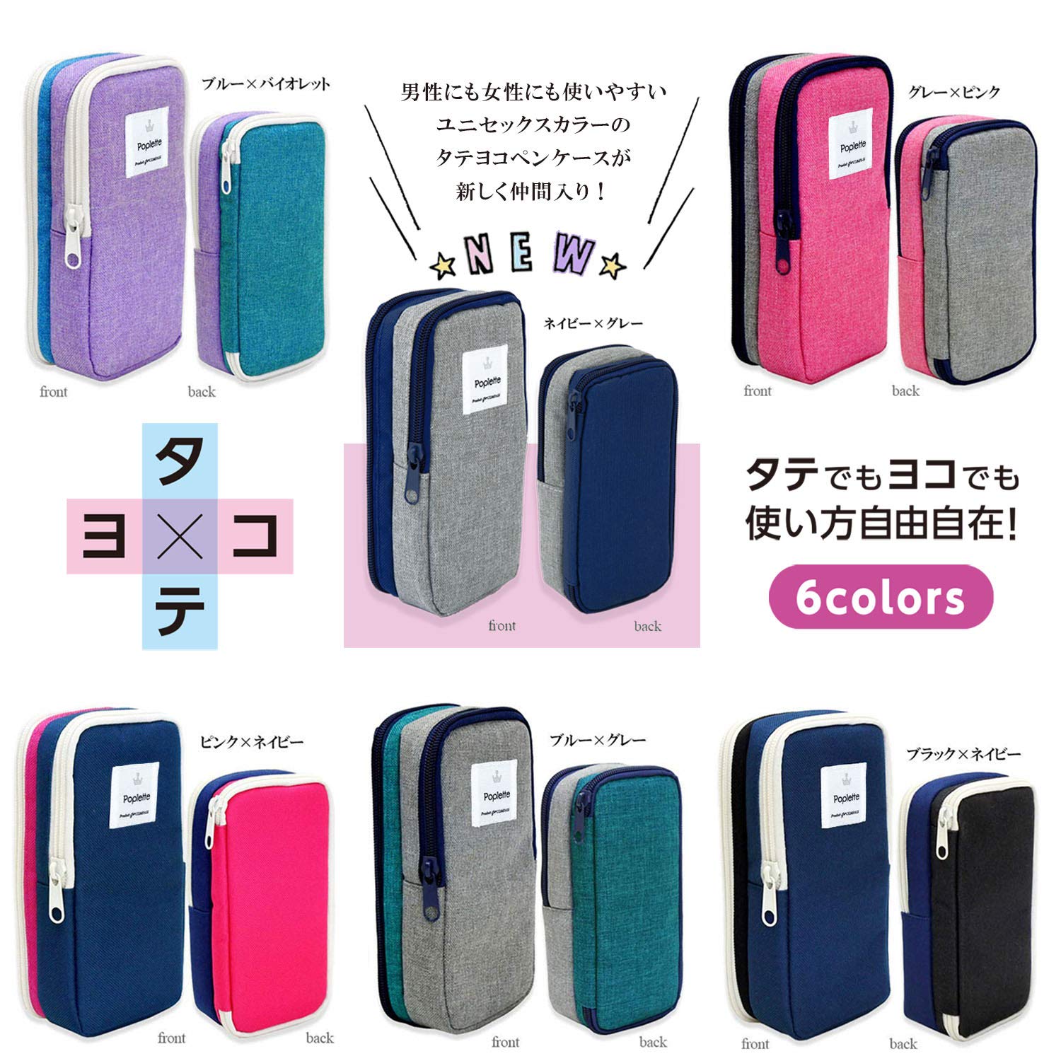ニッケン文具 ペンケース Poplette タテヨコ ブルー×バイオレット PLP1-BV