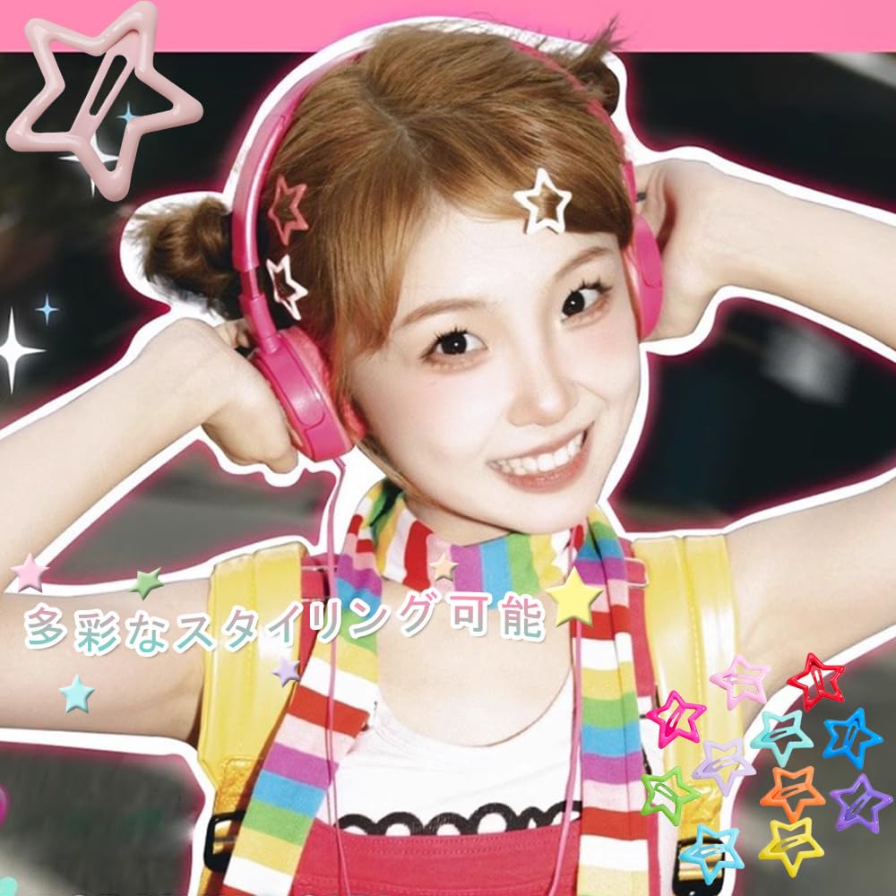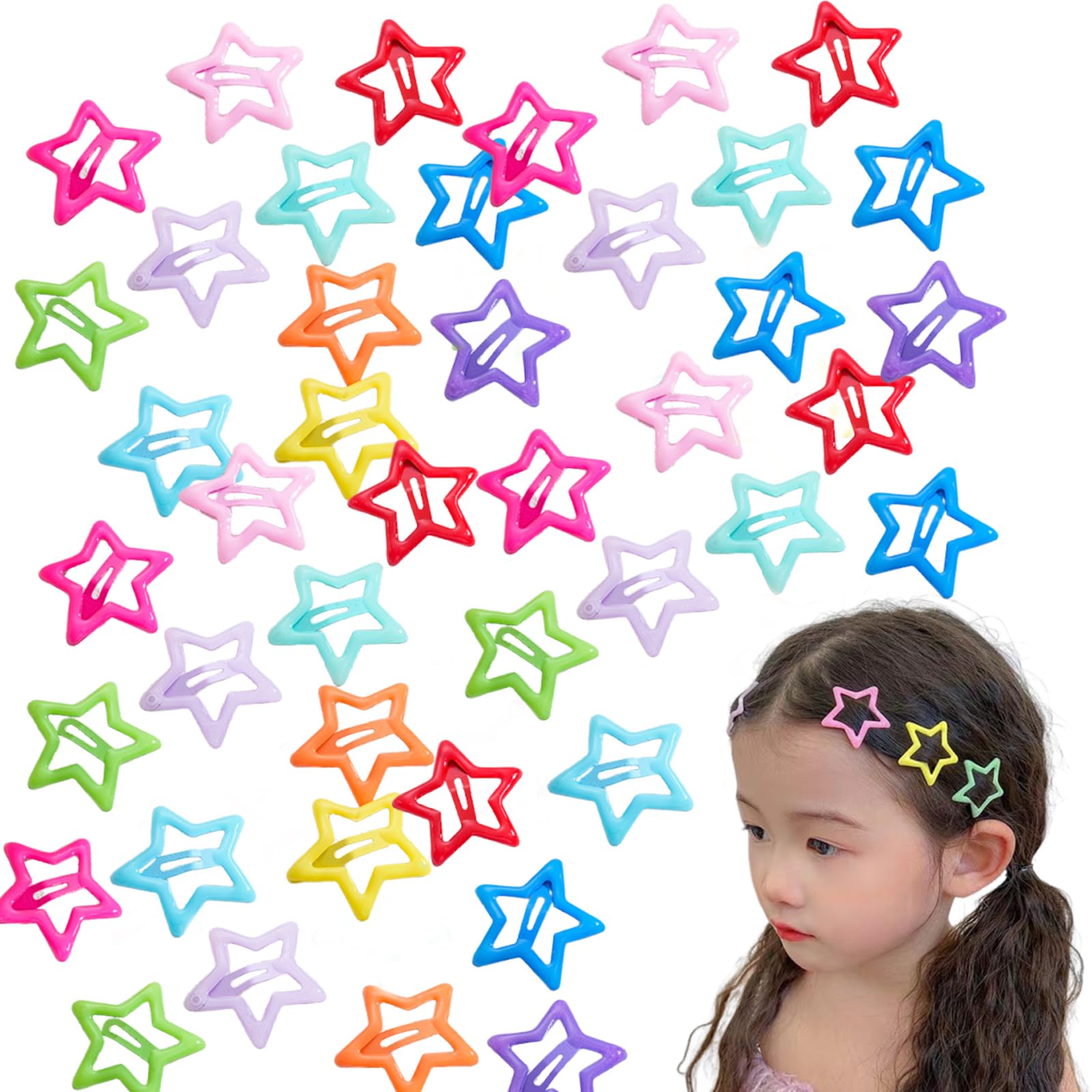 KALOLINNA ヘアクリップ 星 前髪クリップ パッチンピン 40個セット 可愛い y2k かわいい カラフル 星型 女の子 髪飾り 髪留め 入学 誕生日 プレゼント(マルチカラー)