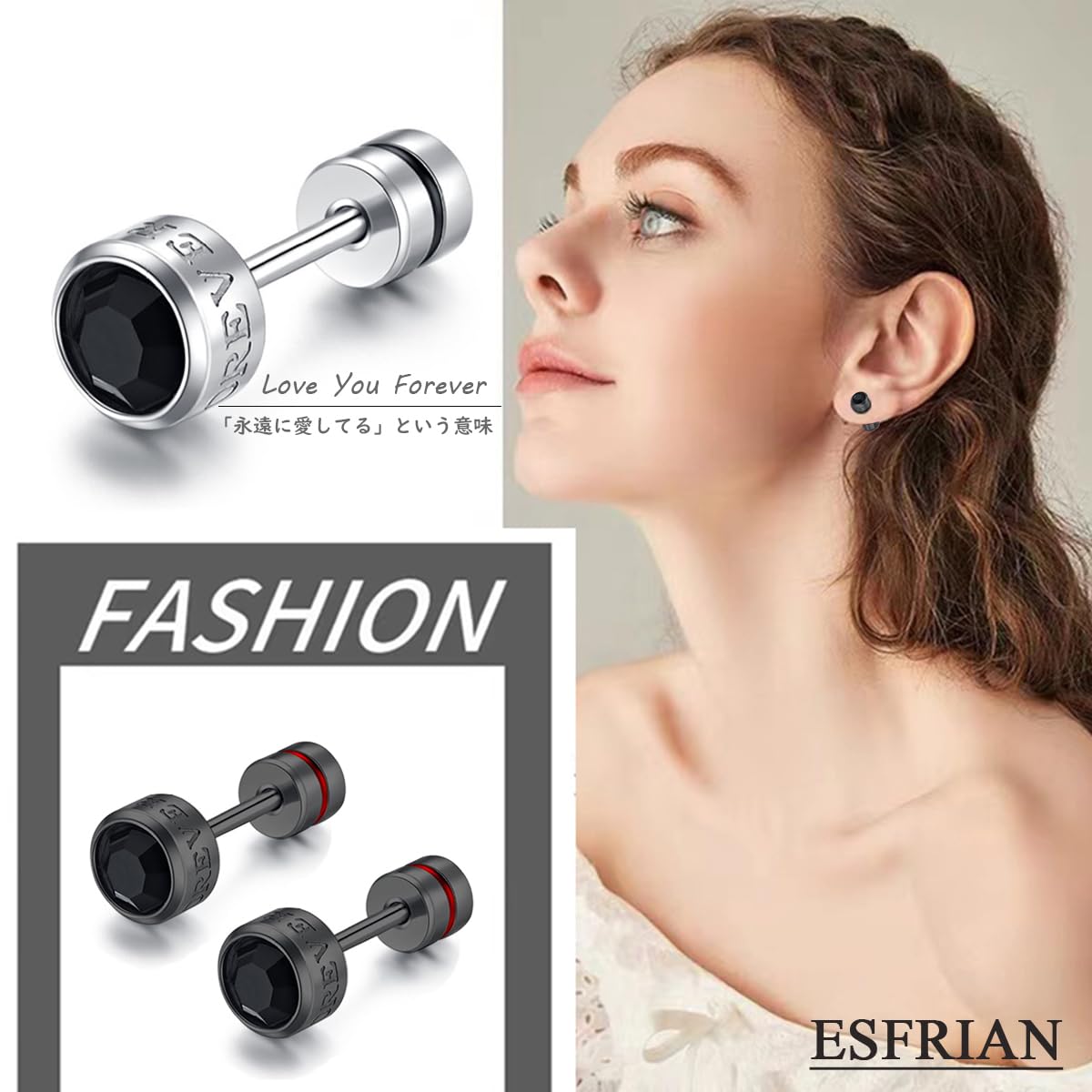 ESFRIAN ピアス メンズ シンプル メンズピアス ゴールド 黒い石 サージカルステンレス スタッド つけっぱなし ネジ式 ジュエリー 男女兼用 両耳用 キャッチ 人気 おしゃれ プレゼント レディース ファースト ブラック 2個セット 5mm (ゴールド)