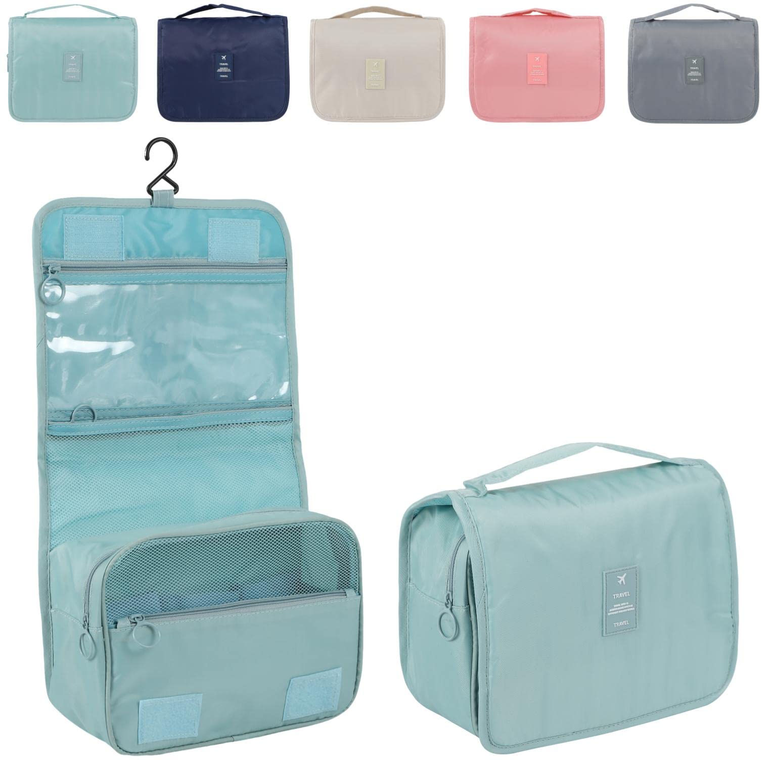 fogman トラベルポーチ トイレタリーバッグ 大容量 フック付き 洗面用具入れ 化粧ポーチ (スカイブルー)