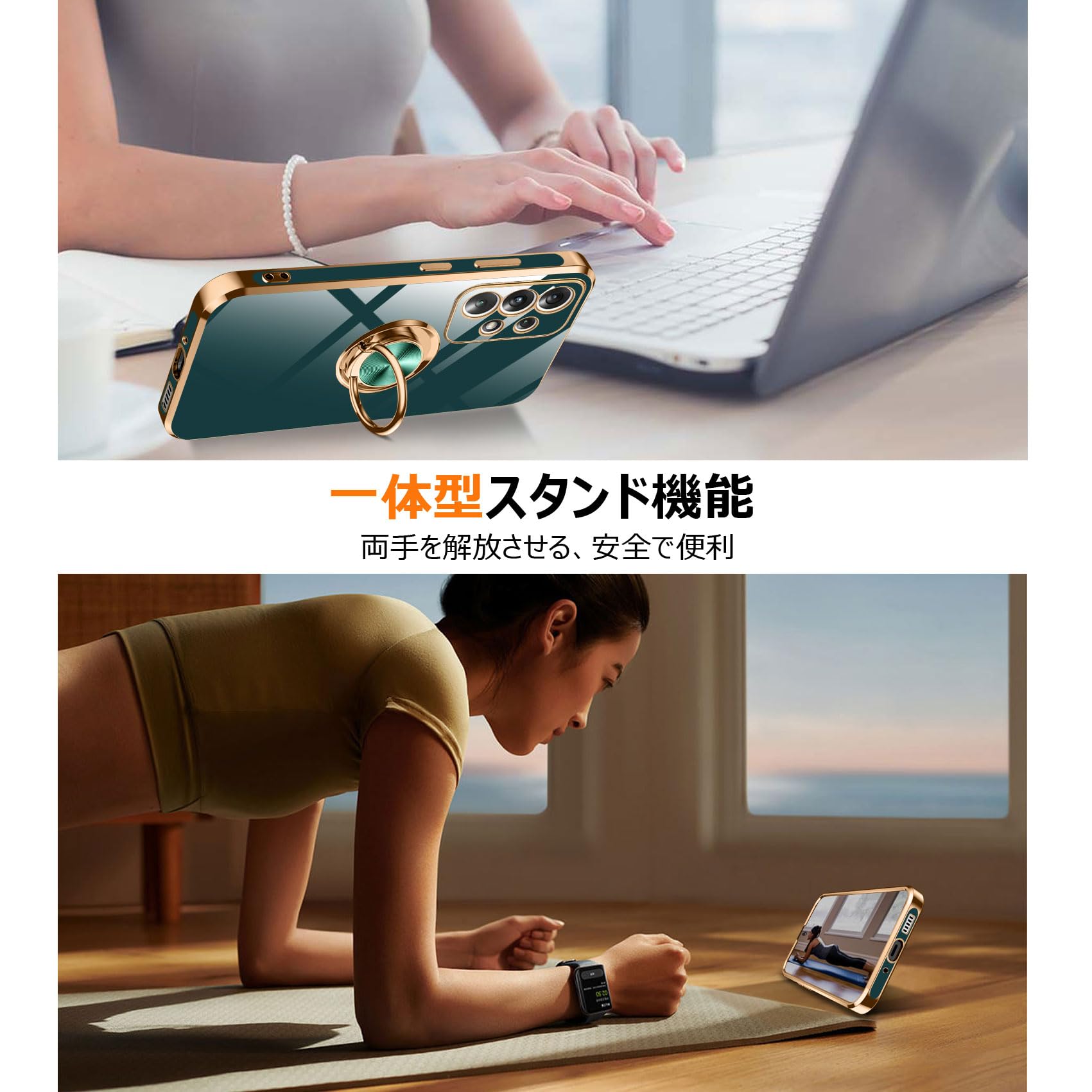 サムスン ギャラクシー A52 5G ケース SC-53B 耐衝撃 TPU ソフトケース 薄型 軽量 さらさら肌触り ストラップホール付き カバー 米軍MIL規格取得 衝撃吸収 車載ホルダー対応 スタンド機能 携帯カバー 緑 WY91-39