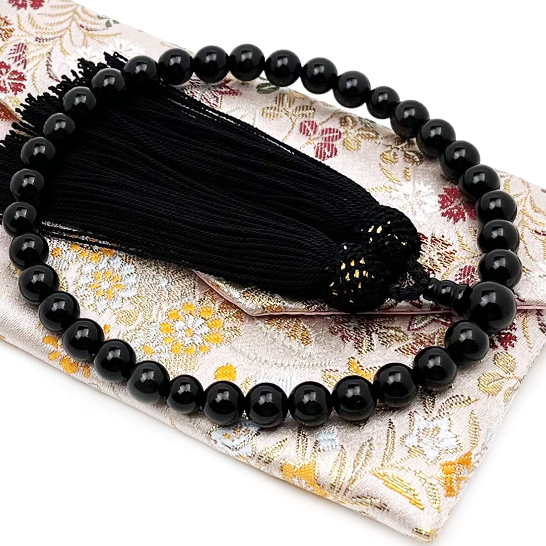 永善念珠屋 数珠 女性用( 黒オニキス 7mm玉 頭付房)【西陣織 数珠袋付き】全ての宗派で使える じゅず 女性 念珠 手作り