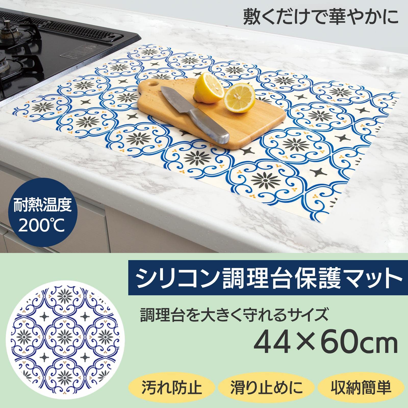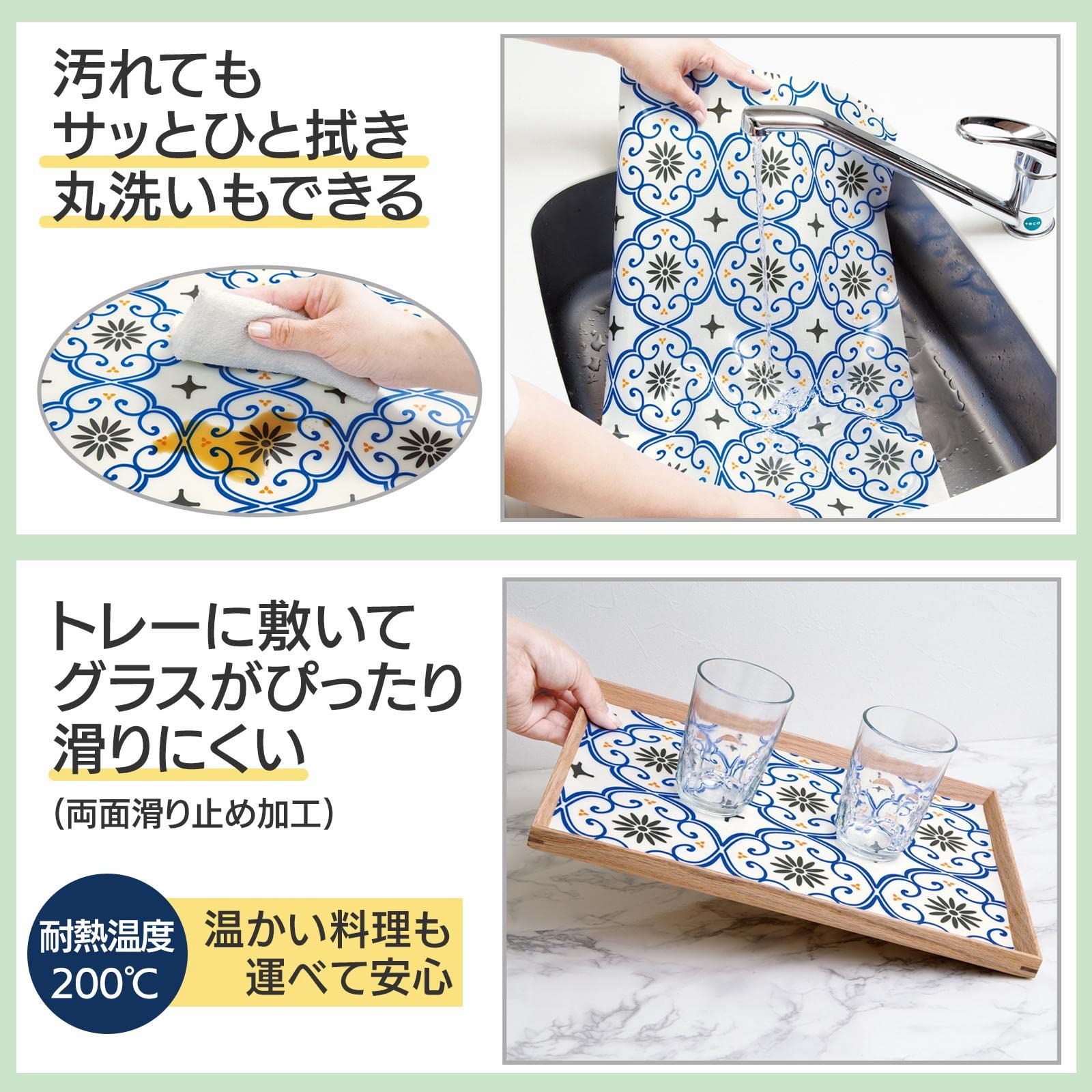 両面に滑り止め加工を施した、おしゃれな調理台保護マット!