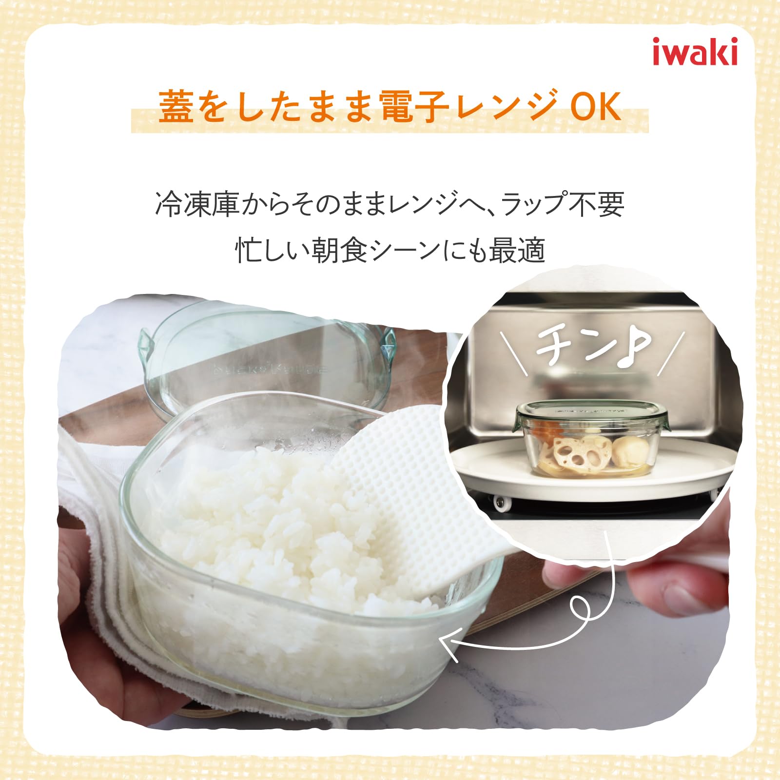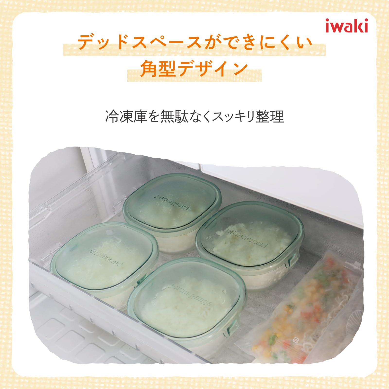 iwaki イワキ 耐熱ガラス 保存容器 グリーン 角型 S 450ml ごはん 1膳 パック&レンジ