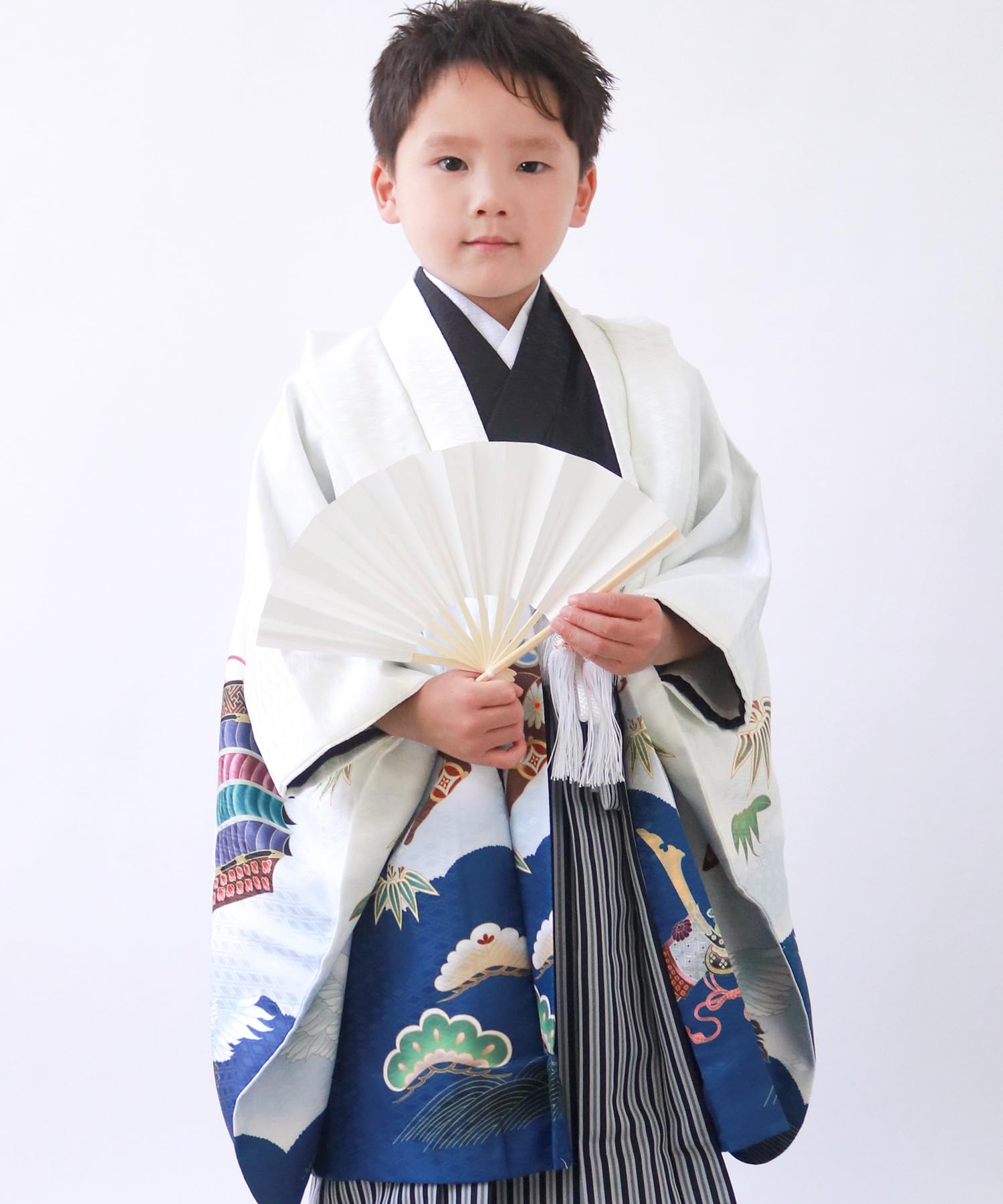 [セット内容]: 着物/羽織/袴/襦袢/履物/角帯/扇子/懐剣/羽織紐/お守り/足袋/腰紐2本/着付け説明書