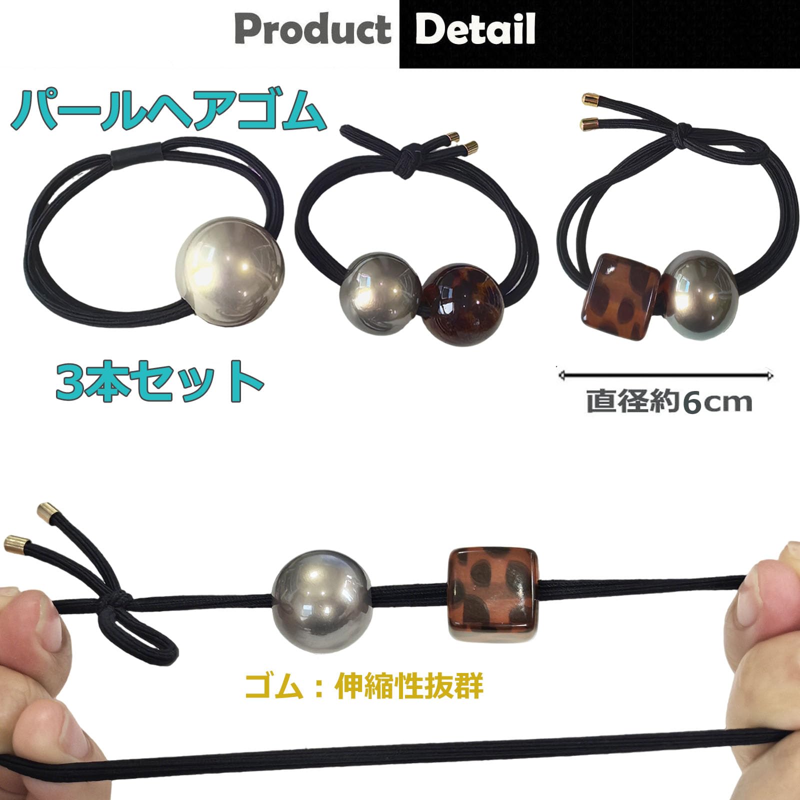 【品名】パールヘアゴム3本セット,超弾性の良質ゴムを採用したため、丈夫で耐久性に優れます。