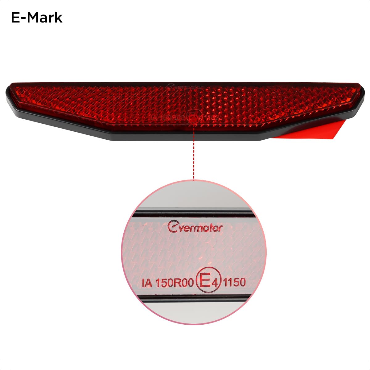 Evermotorのミニリフレクターは、高品質なアルミ製プレート付きで、バイク、スクーター、ATVなどの車両に適した反射板です。E4認証を取得しており、ヨーロッパの安全基準に準拠した製品で、道路での使用が合法であることがされています。簡単に取り付けられる貼り付けタイプで、悪天候にも耐え、視認性を向上させるため、他のドライバーからしっかりと見えるようサポートします。