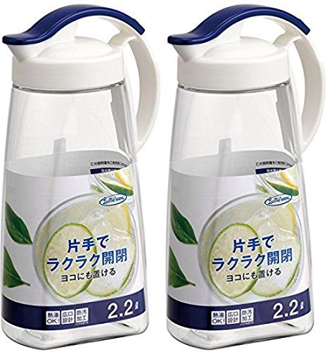 岩崎工業 日本製 横置き 冷水筒 タテヨコ スライド ピッチャー ネイビー 2.2L 2個セット LSX288