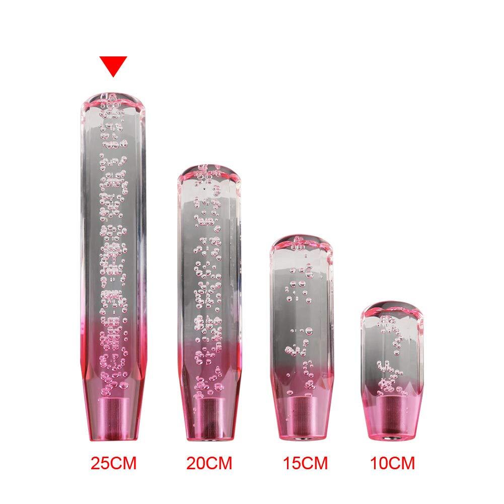 ADPOW 汎用クリスタルシフトノブ泡入り八角 250mm バブルゲートAT車/MT車対応 3枚アダプター付き大半国産車対応普通車/軽自動車/トラックホワイト+レッド