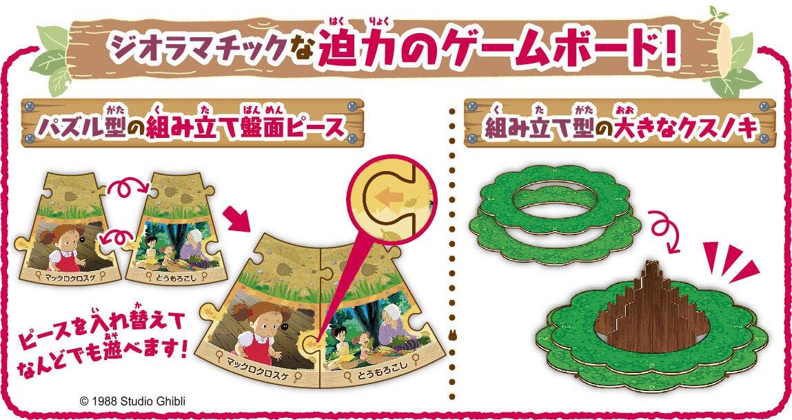 小トトロになりきって「どんぐり」をたくさん集めたプレイヤーが勝ち特徴的なパズル型の盤面ピースをはじめ、コマとして使用するトトロたちやペーパークラフトのように組み立てるクスノキなど劇中のトトロの世界に登場するものがいっぱいゲームで遊ぶだけではなく、盤面を組み立てる楽しさもあり、そのまま飾っておくこともできます 安全警告 無し