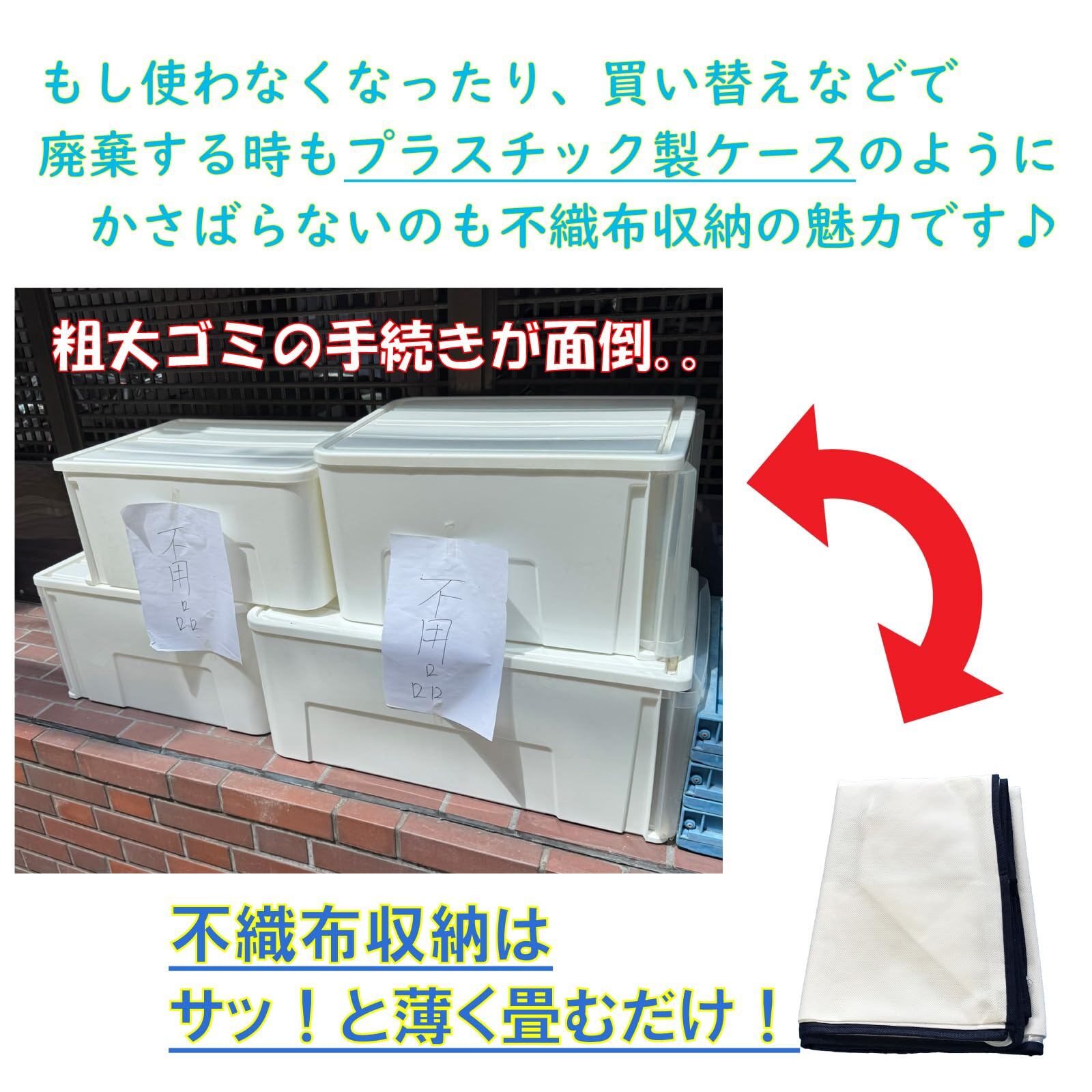 サイズ(収納ケース1枚あたり):約幅50x奥行35x高さ20cm 重量:100g 素材:ポリプロピレン不織布/ポリエチレン ※洗えません 生産国:中国