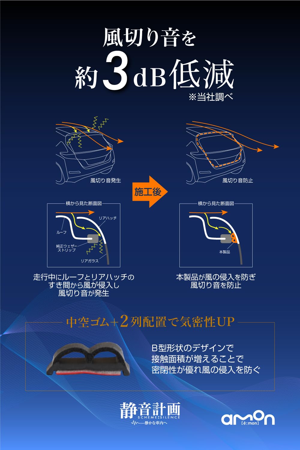 エーモン(amon) 車内を静かにする静音計画 風切り音防止テープ サイドボディ リアハッチ用 約5m 4818 EPDM 黒