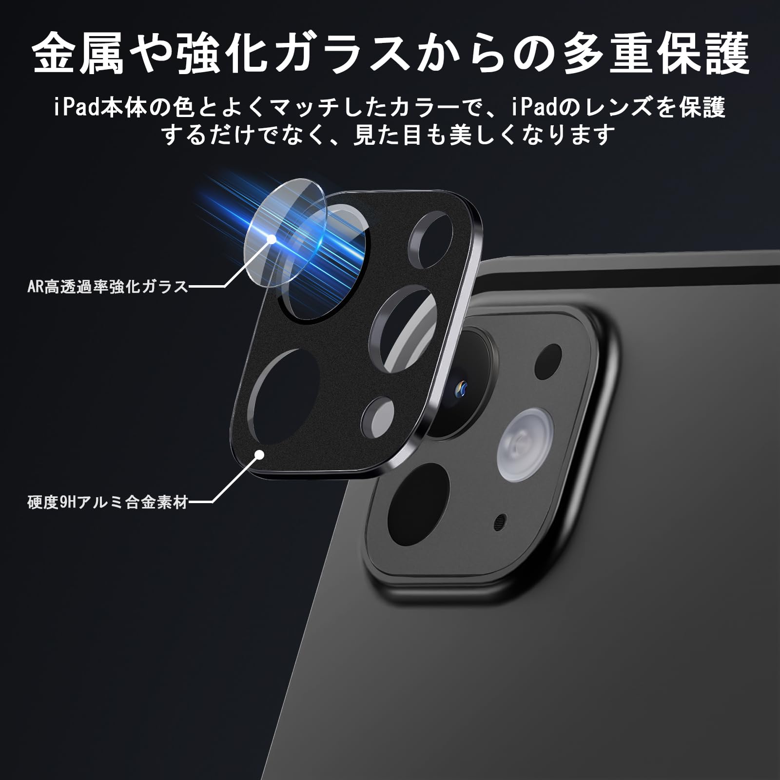 [NicMool] iPad カメラフィルム For iPad Pro 13/iPad Pro 11 インチ M4 2024年 専用 For iPad Pro 12.9/Pro 11インチ (2022/2021/2020) 対応 カメラ保護フィルム アルミ合金製+AR高透過率強化ガラス 硬度9H 耐衝撃 傷防止 HDクラリティ 3Dフルカバー for iPad Pro 13/11 インチ (ブラック)