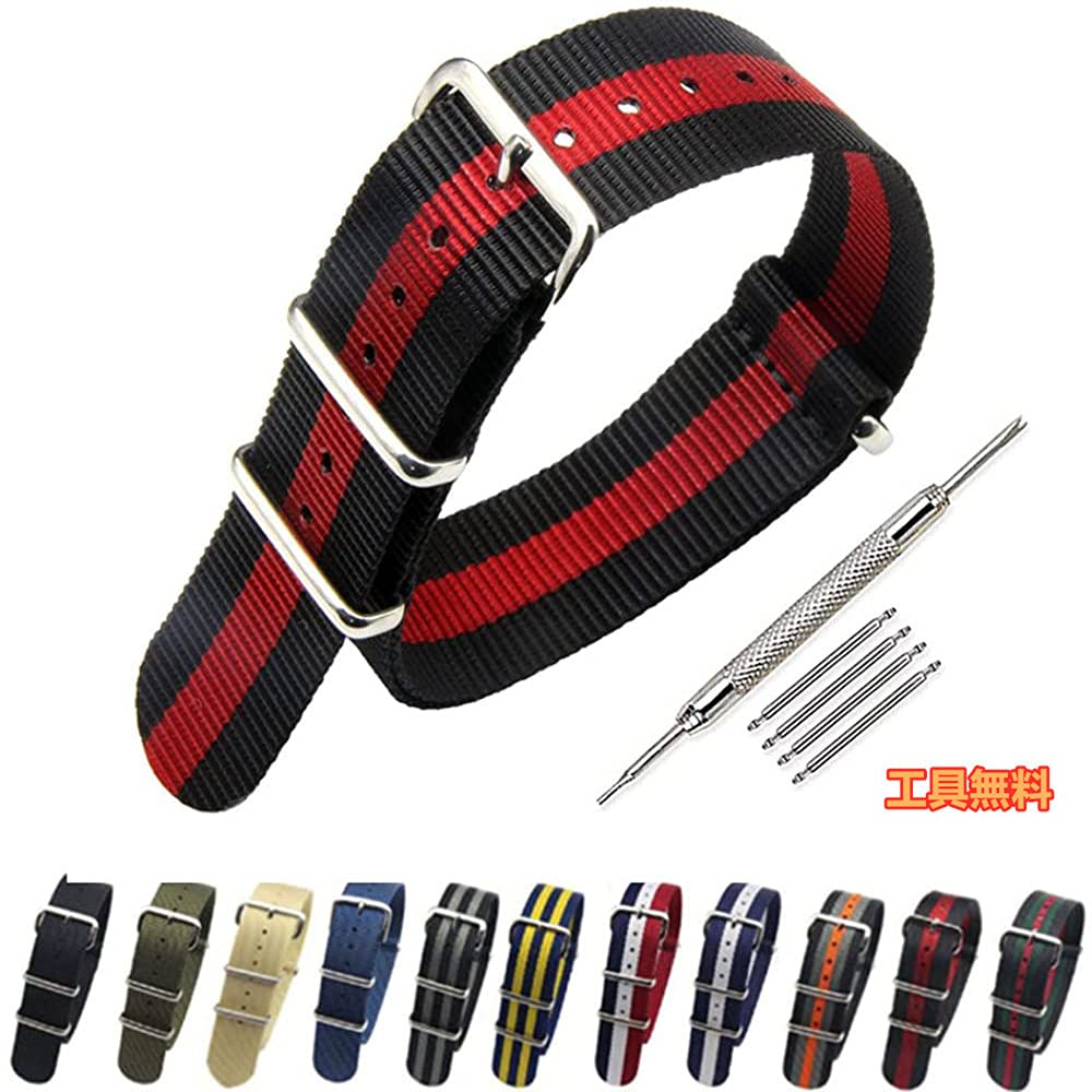 【特価セール】[Nywing] 時計ベルト Natoタイプ 腕時計バンド ナイロン G10上質 ウォッチストラップ 16mm 18mm 20mm 22mm 24mm Ballistic時計バンド Nylon Watch Band G10 交換ベルト NATO バンド 腕時計 取り替え工具付