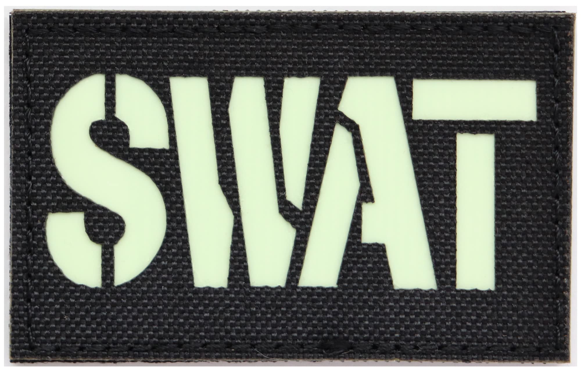 「SWAT」の文字をデザインしたワッペン!文字の部分に蓄光・発光素材を採用。サイズは8cm×5cm。