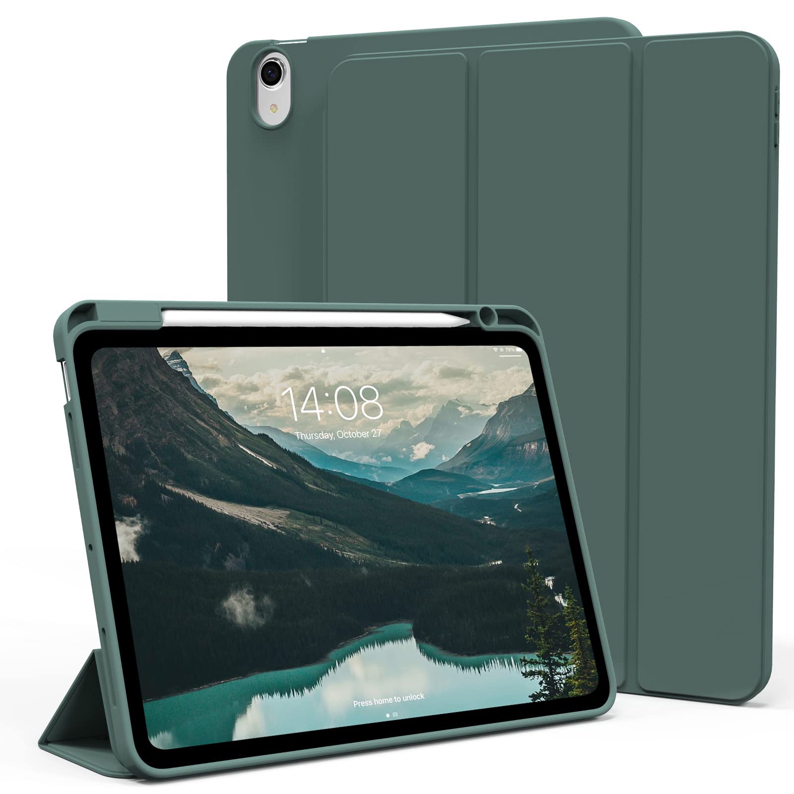 KenKe iPad Air 11インチ ケース (M3/M2、2025/2024) iPad Air 第5/4世代 ケース 2022/2020発売 10.9インチ 軽量 柔らかいシリコン TPU材質 ペン収納 カバー 3段階折り畳み可 スタンド マグネット付き 自動スリープ機能 Apple Pencil 収納可能 ダークグリーン