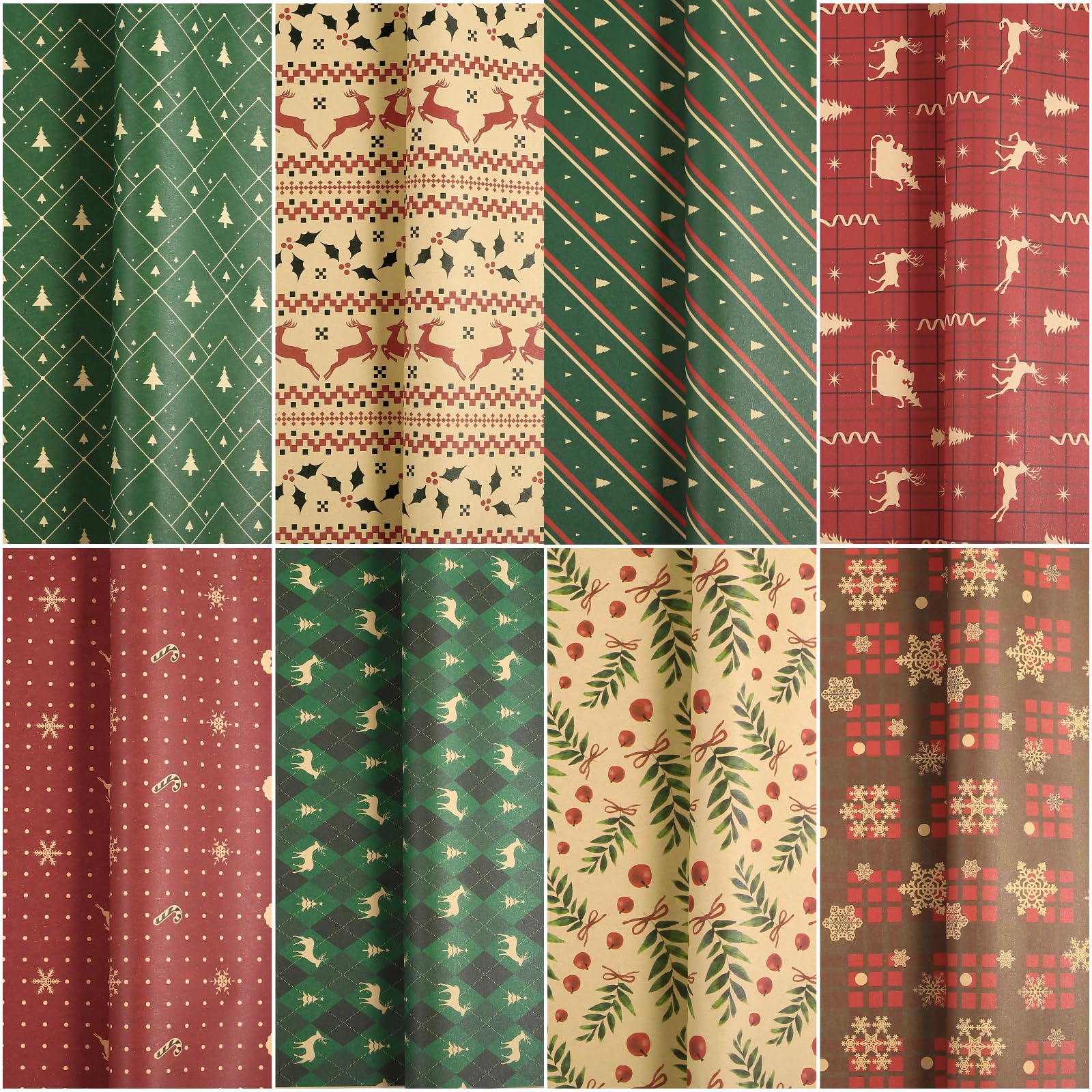 LEMESO クリスマス ラッピングペーパー 包装紙 8枚入 大判 50x70cm 半才 クリスマスプレゼント ギフト 贈り物 包装 ラッピング紙 ラッピング用品 梱包材 包装資材 赤 クラフト おしゃれ