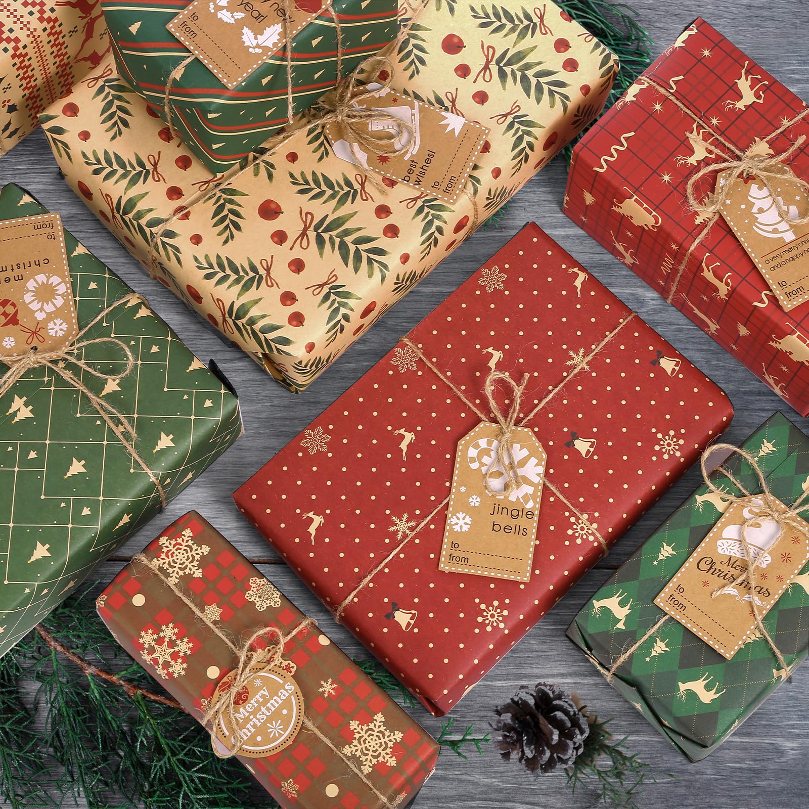 【セット内容】8種ラッピングペーパー & ラッピング紐 & 8枚ギフトタグ、サイズ:50ⅹ70cm(4つ折りになって届く、折り目あり、予めご了承ください????)