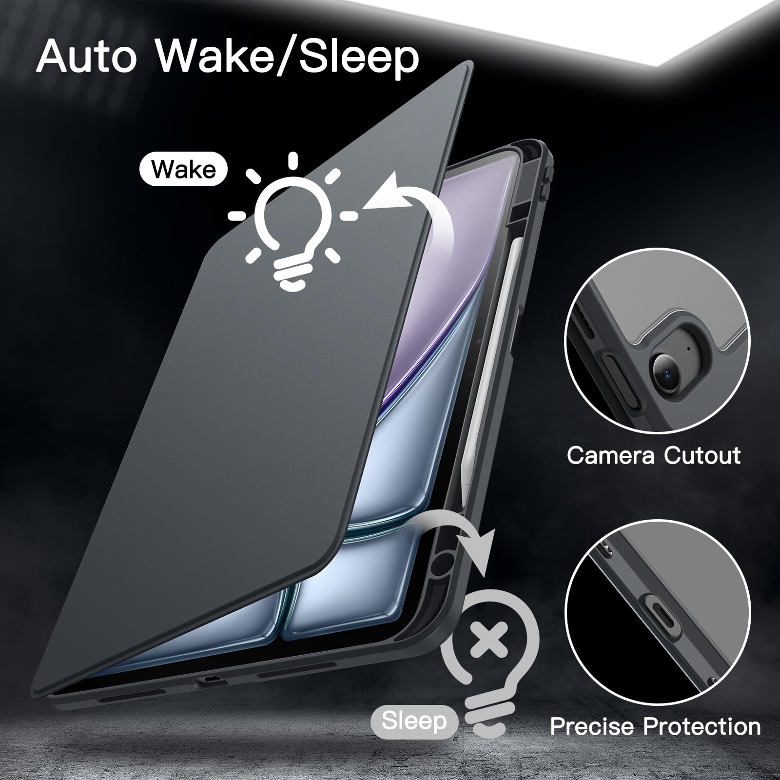 [自動ウェイクアップ/スリープ] フロントカバーの開閉により、画面を起動またはスリープモードにします。もっと省エネ、内蔵マグネットでケースをしっかり閉められます