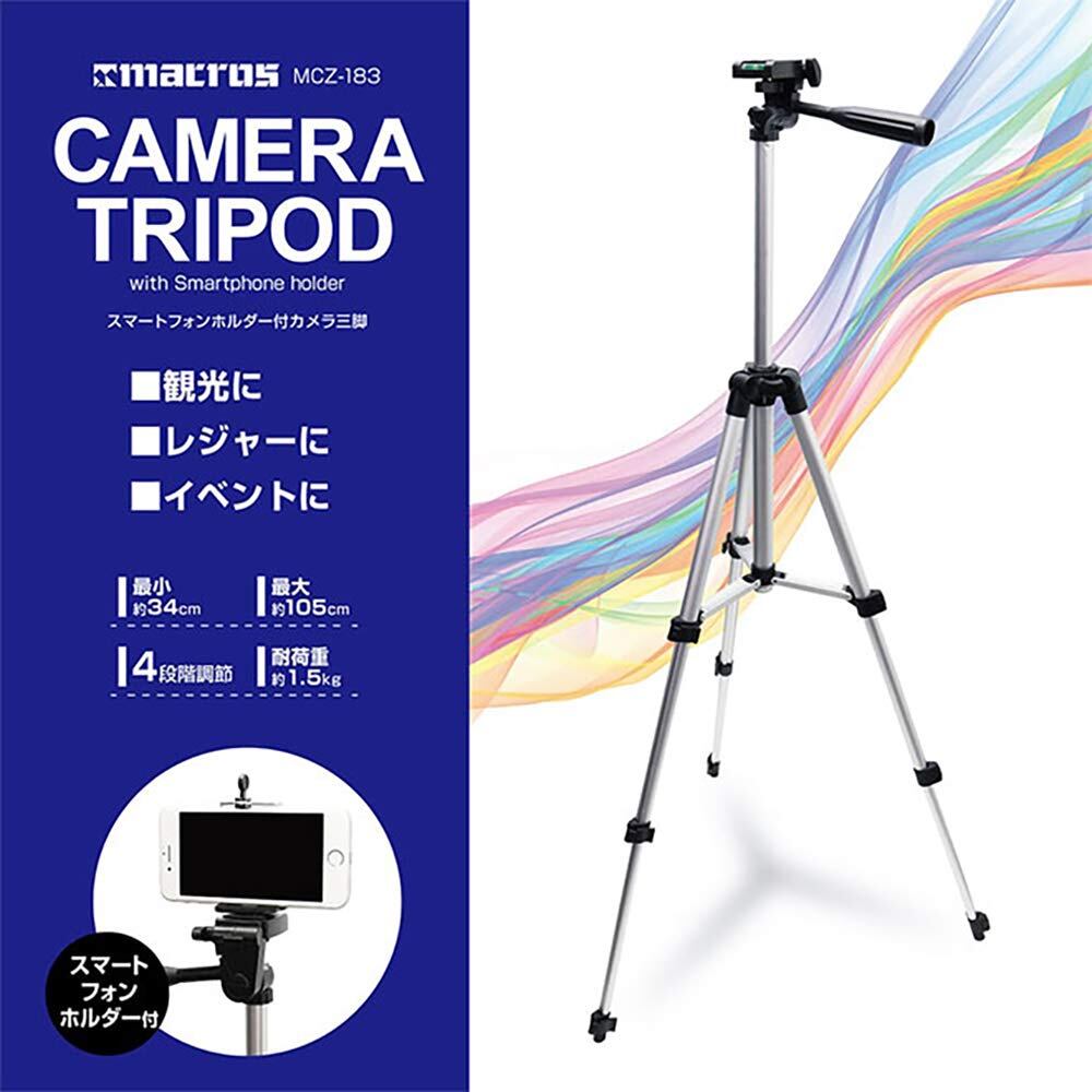 【人気商品】マクロス 三脚 コンパクト ( 一眼レフ、ビデオカメラ、スマホ、デジカメ、カメラ、 アタッチメント付き )高さ 34cm-105cm 耐荷重1.5kg MCZ-183