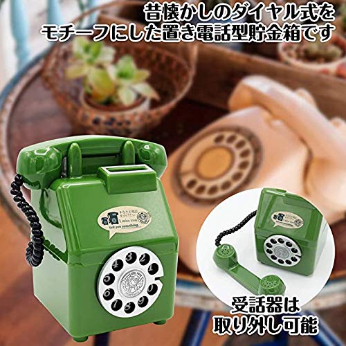 貯金箱 公衆電話 500円玉 ダイヤル式 昭和 80’s レトロ 玩具 おもちゃ ATM 雑貨 (緑) グリーン