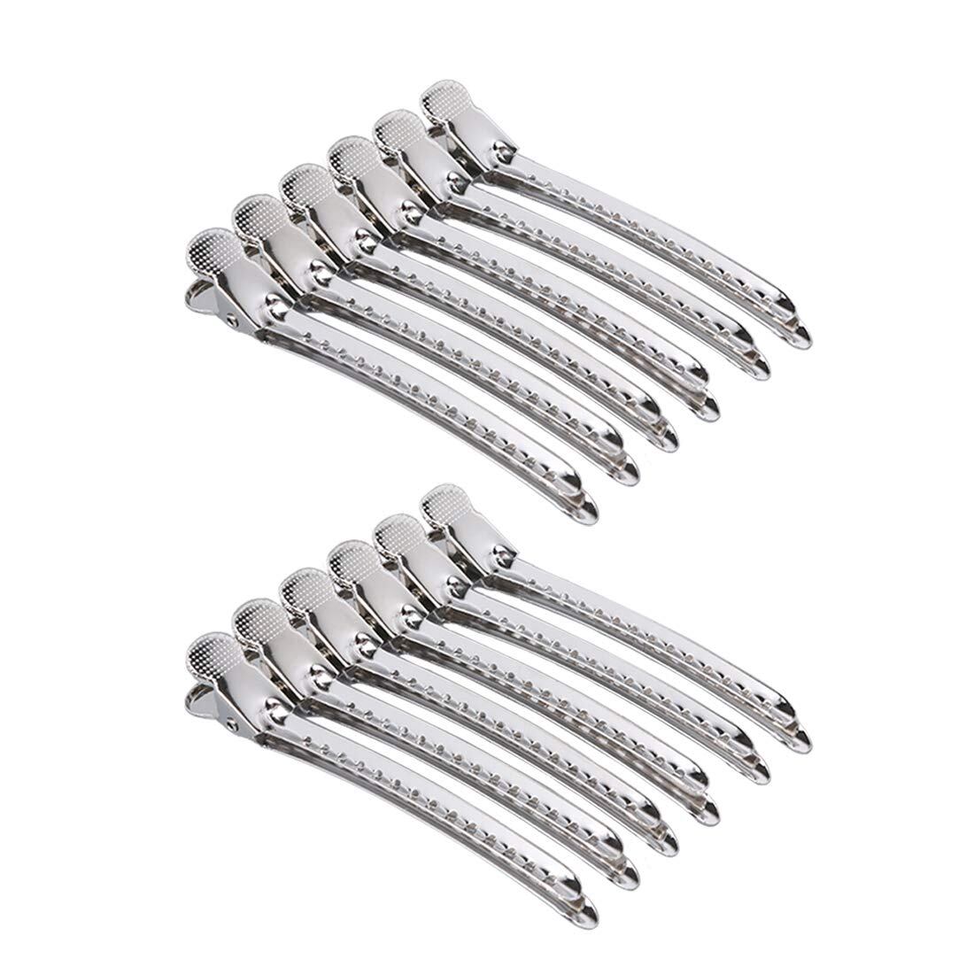 12本セット ダッカール ヘアクリップ プロ用 美容業界 美容師 前髪 業務用 強力 跡がつかない 髪留め ヘアピン ワニクリップ ステンレスシルバー(9.5cm)