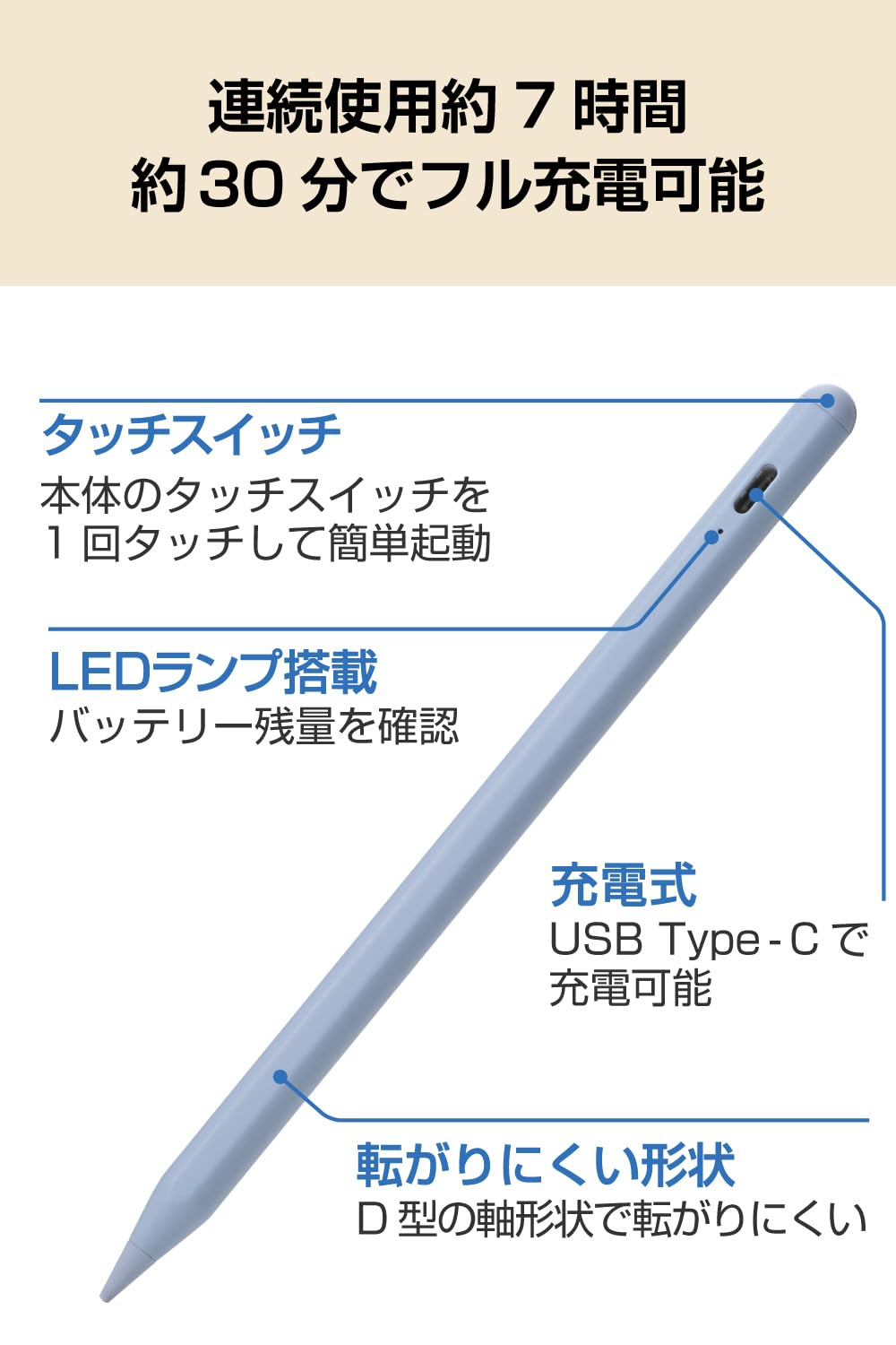 【数量限定】エレコム タッチぺン スタイラスペン 【他機種 スマホ・タブレット各種対応】 急速充電 30分でフル充電 マグネット吸着可能 タイプc充電 (汎用タッチペン) ブルー P-TPACST05BU