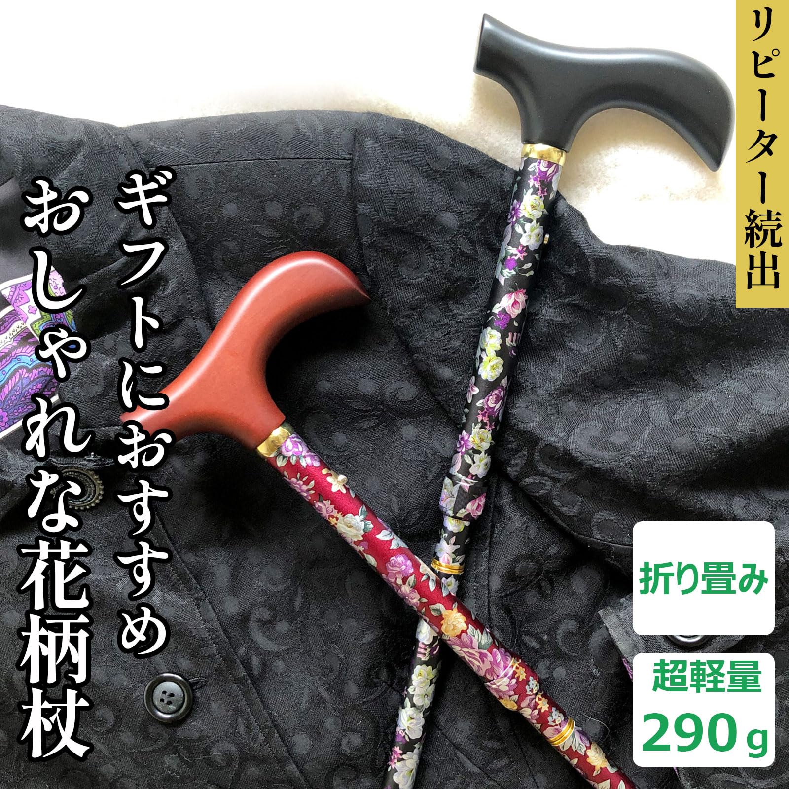 【特価セール】ウェルファン 夢ライフステッキ 柄杖折りたたみ伸縮型 花ブラック