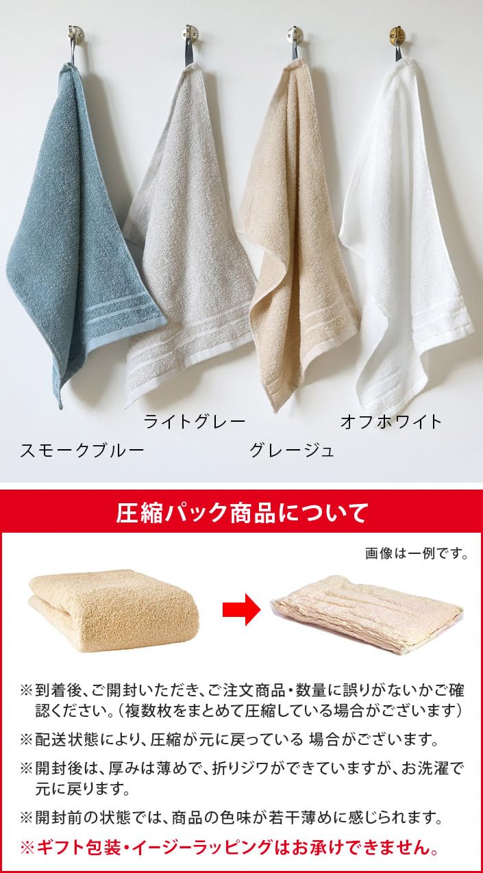 【ミニバスタオル 2枚セット】生産地:日本 素材:綿100% サイズ:約50×100cm カラー:オフホワイト、グレージュ、ライトグレー、スモークブルー セット内容:ミニバスタオル 同色2枚、またはアソートメント2枚(01:スモークブルー+ライトグレー、02:ライトグレー+グレージュ) ※この商品は配送をコンパクトにするため、タオルを圧縮してお送りします。