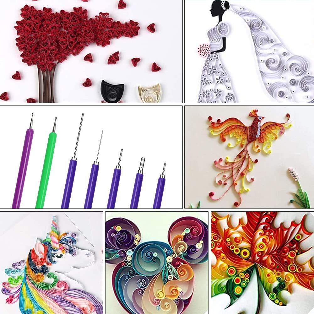 EMAGEREN クイリングツールセット 7本入 ペーパークイリング 紙巻きツール 双頭 クイリングツール クイリングスロット ニードル スロット クイリング ペーパーアートツール 紙 巻き 趣味 手芸 造花 DIY ペーパークラフト