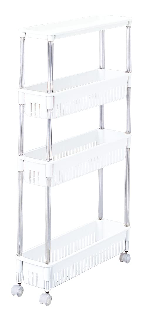 サンコープラスチック すき間収納 オフホワイト 約幅15×奥行50×高さ87cm テーブルワゴン 4段 超スリム 9個入り