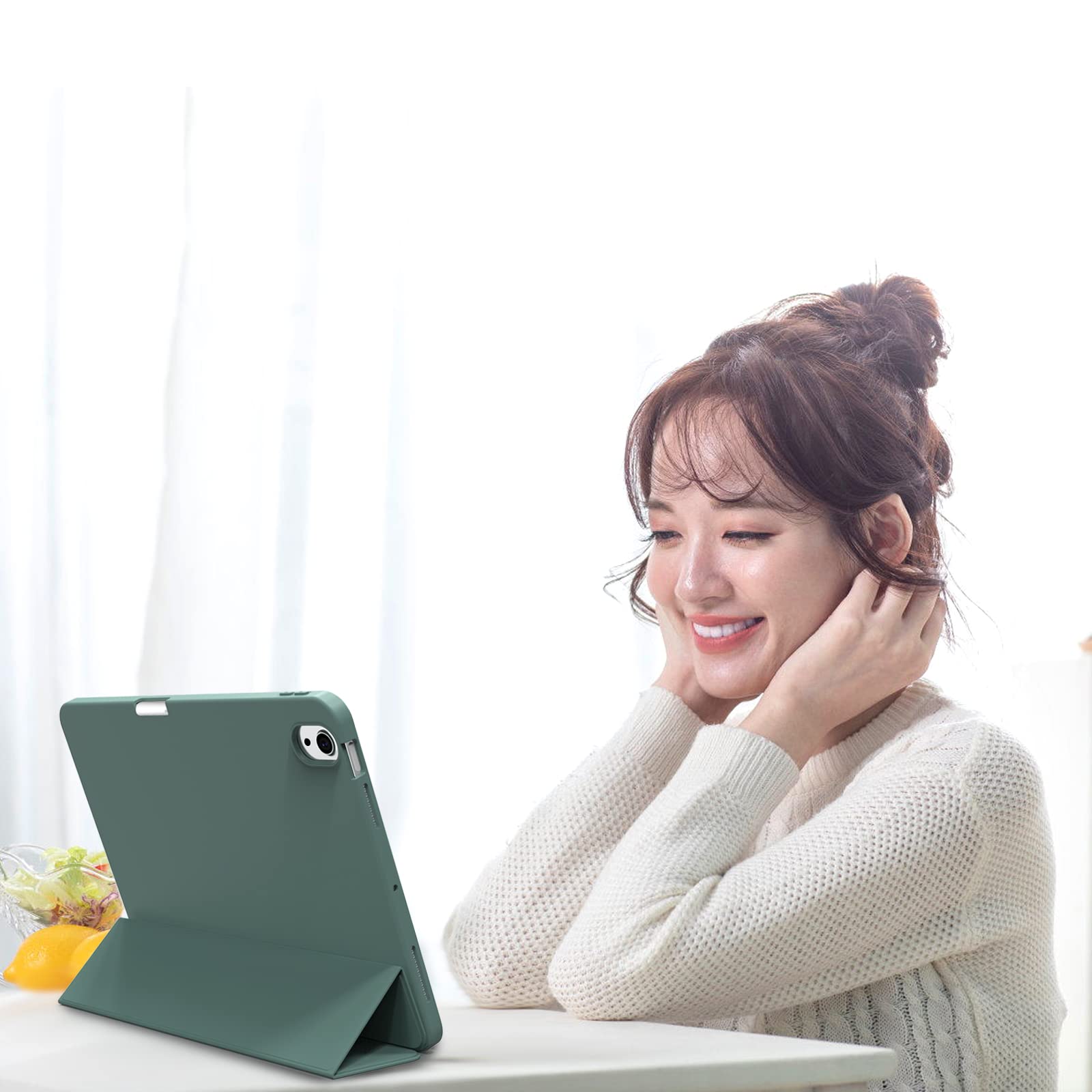 【人気商品】KenKe iPad Air 11インチ ケース (M3/M2、2025/2024) iPad Air 第5/4世代 ケース 2022/2020発売 10.9インチ 軽量 柔らかいシリコン TPU材質 ペン収納 カバー 3段階折り畳み可 スタンド マグネット付き 自動スリープ機能 Apple Pencil 収納可能 ダークグリーン