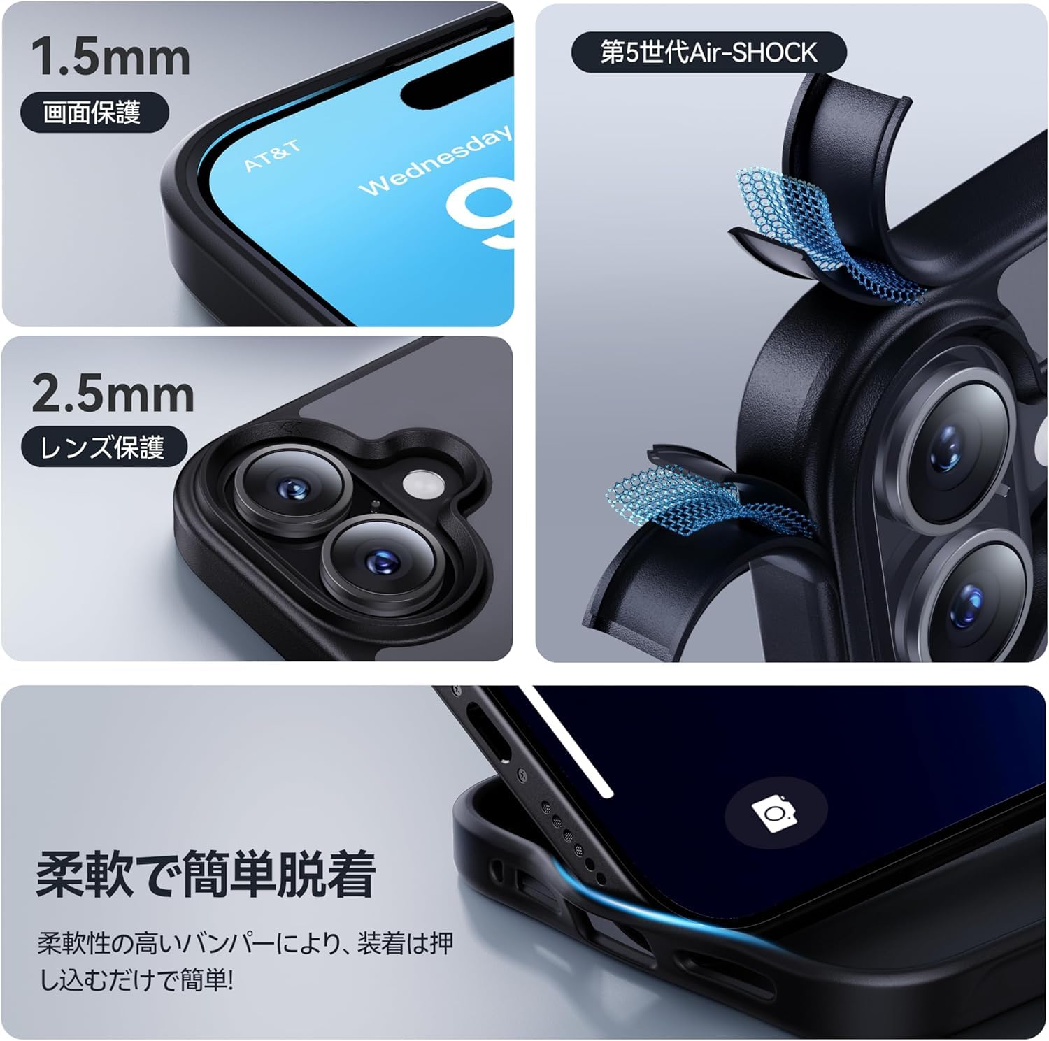 【米軍MIL認証済み・もしもの時も安心】米軍MIL規格「MIL-STD-810G」をクリアした強靭なiPhone 16用ケース。四隅のAir-Shock5.0と三層の耐衝撃構造により、3.85mの高さから5500回、36方向でアスファルトや砂利に落下させてもスマホ本体は無傷!日常使いから旅行まで、どんなシーンでも安心して使える。【365日安心】12時間以内に対応、安心してご購入ください!(購入履歴→購入商品→販売者→質問からご連絡ください)米軍MIL認証番号:GZMR220702237705