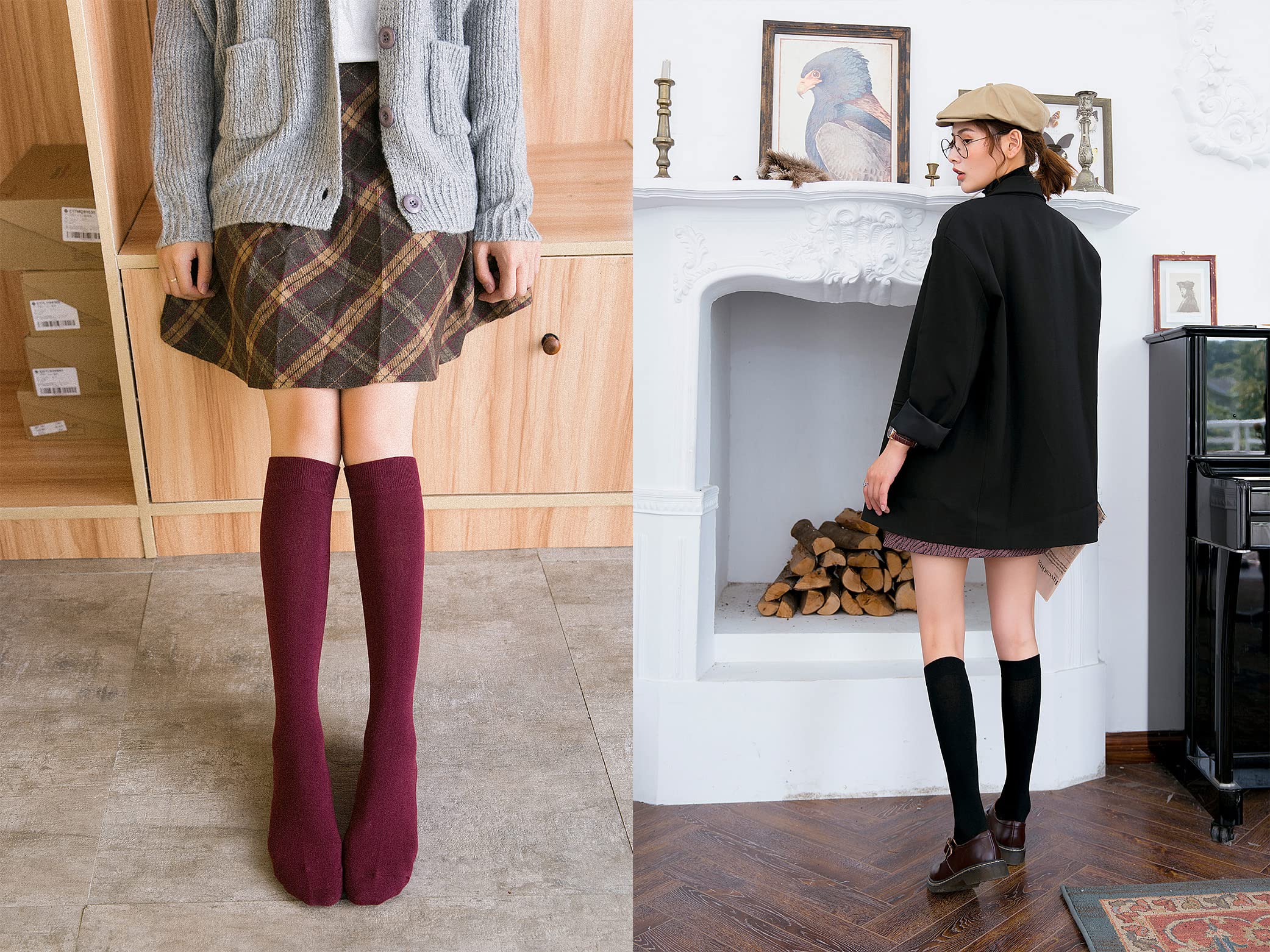 [RAKUKOU] ハイソックス レディース 靴下 綿 ニーソックス ひざ下 ロングソックス 無地 着圧 保温 防寒 美脚 通学 通勤 旅行