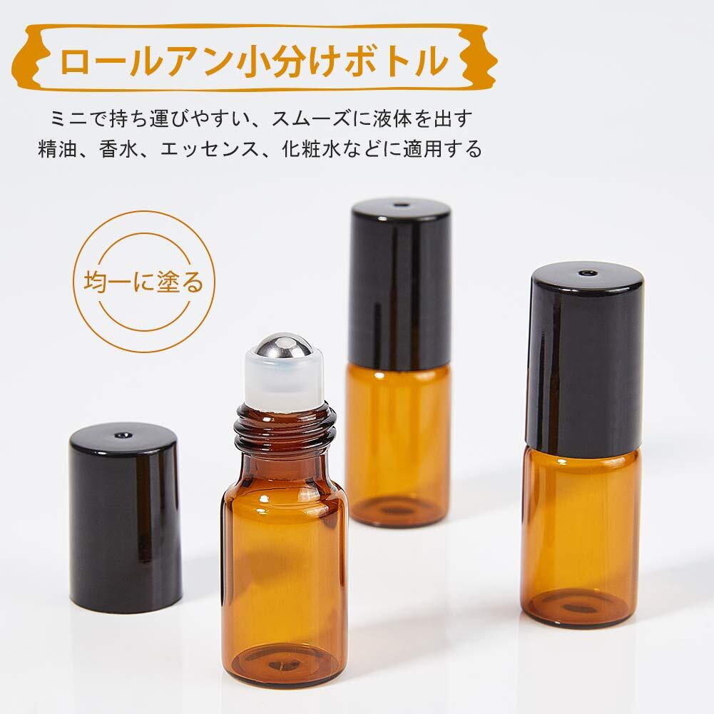 BENECREAT 30本3mlブラウンロールオンアロマボトル ガラスアロマ瓶 スチールボール瓶 アロマオイル用 香水用瓶 注ぎツール付 ミニガラスアロマボトル 小分けボトル