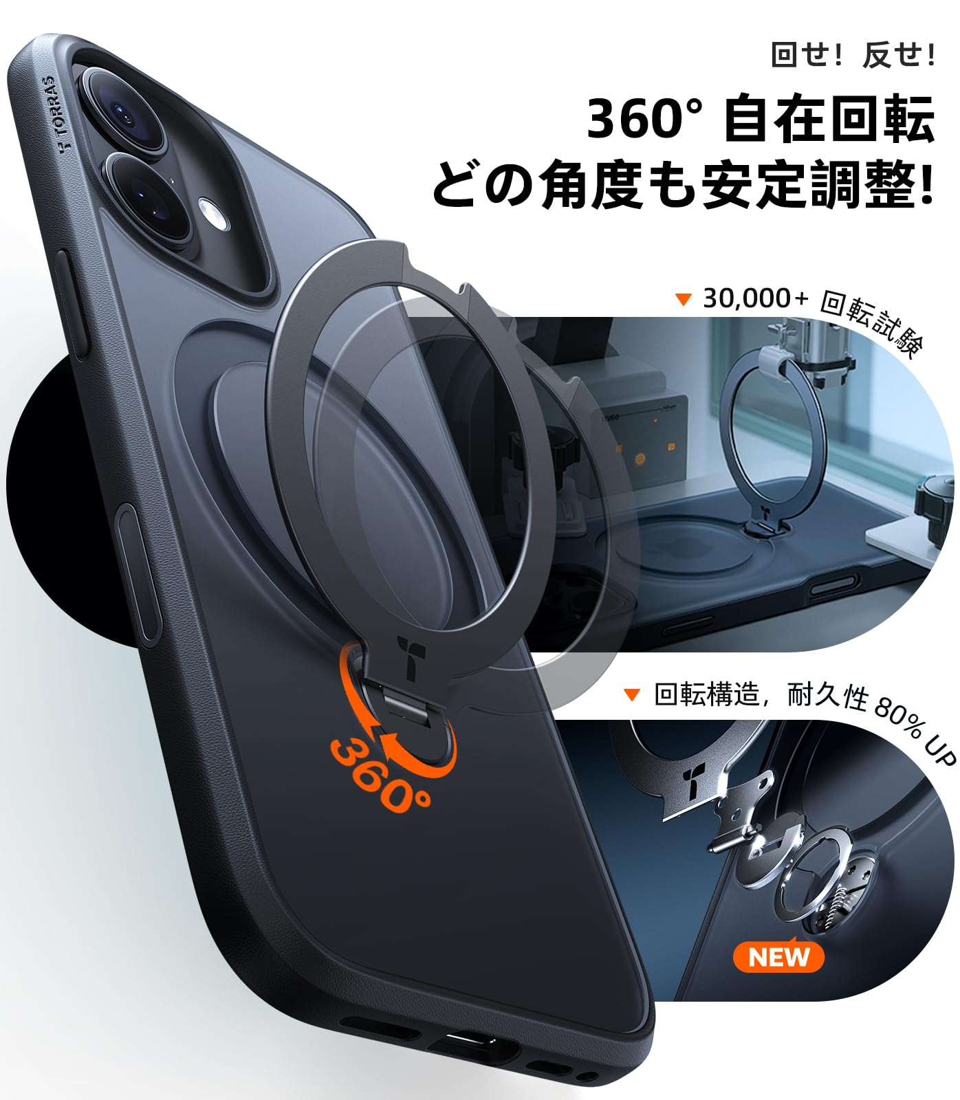 特徴 360 度回転スタンドリング, MagSafe対応, カメラコントロールボタン付き, 多機能一体・高耐久性, 米軍耐衝撃規格