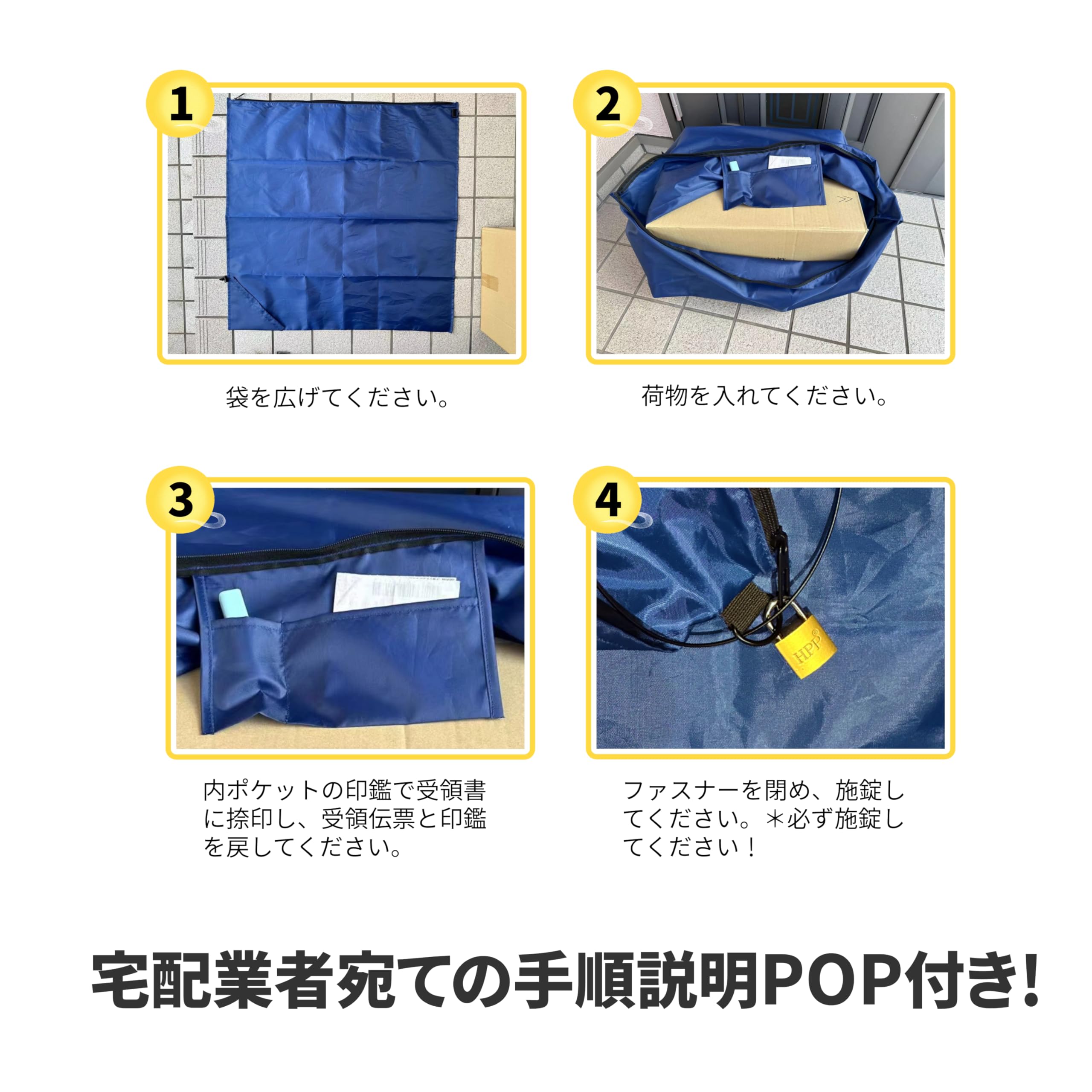 折りたたみ式宅配バッグ 80L大容量 置き配バッグ 防犯対策 玄関収納 置き配 マグネット プレート ネイビー (折りたたみ式宅配バッグ)